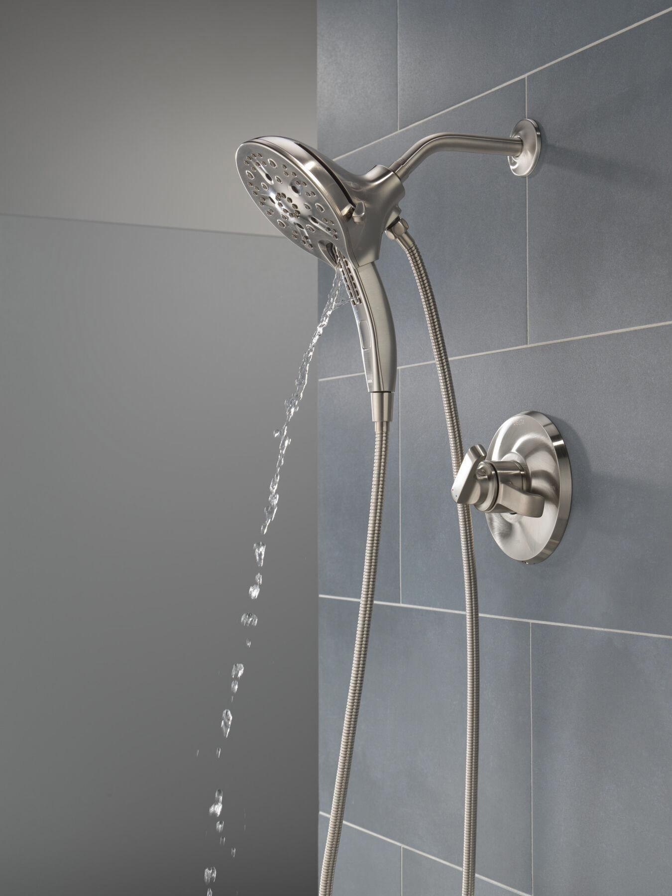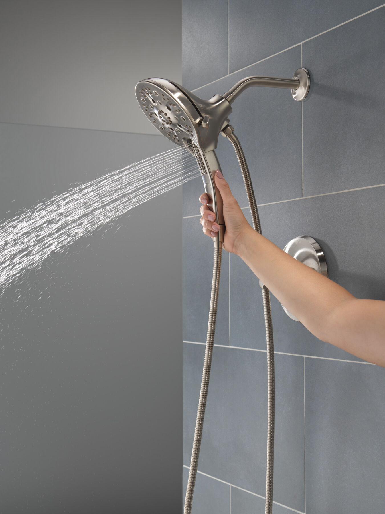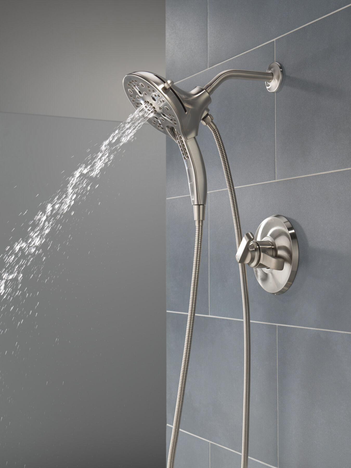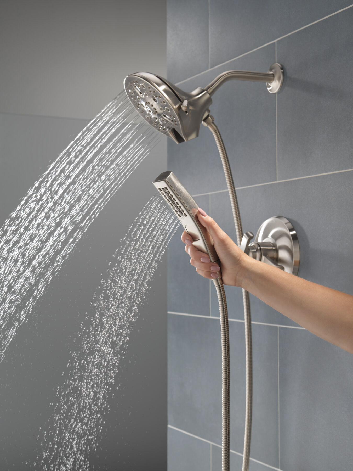 Familiar geometries and subtle curves in the Tetra Bath Collection combine to bring a sleek, architectural look and feel to the bath. Lumicoat Finishes are guaranteed to resist water spots and mineral buildup and easily wipe clean without the need for cleaners or chemicals. The Delta In2ition Two-in-One Shower features a detachable hand shower which can be used separately from or simultaneously with the shower head. This integrated dual-functionality gives you maximum flexibility without sacrificing warmth, as you can choose to have water streaming from the shower head only, the hand shower only or both the shower head and hand shower at once. Using advanced technology, H2Okinetic showers sculpt water into a unique wave pattern, giving you 3X the coverage of a standard shower head and resulting in more coverage, more warmth and more intensity for a truly drenching shower experience. Separate handles for volume and temperature control allow you to set the water at your preferred temperature and turn the shower on or off with the volume control handle—without interrupting your set temperature. The pause setting gives you ample space for shaving, lathering and other shower tasks, then easily restarts the water with the temperature where you left off. You can install with confidence, knowing Delta products are backed by our Lifetime Limited Warranty.