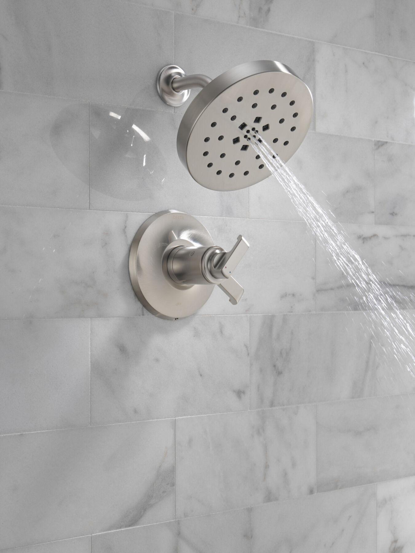 Familiar geometries and subtle curves in the Tetra™ Bath Collection combine to bring a sleek, architectural look and feel to the bath. Lumicoat™ Finishes are guaranteed to resist water spots and mineral buildup and easily wipe clean without the need for cleaners or chemicals. Using advanced technology, H2Okinetic® showers sculpt water into a unique wave pattern, giving you 3X the coverage of a standard shower head and resulting in more coverage, more warmth and more intensity for a truly drenching shower experience. Separate handles for volume and temperature control allow you to set the water at your preferred temperature and turn the shower on or off with the volume control handle—without interrupting your set temperature. The pause setting gives you ample space for shaving, lathering and other shower tasks, then easily restarts the water with the temperature where you left off. Delta® showers with TempAssure® thermostatic valves are engineered to make sure you don’t experience a sudden and possibly unsafe change in water temperature as a result of running water elsewhere, such as using a dishwasher, flushing a toilet or running a washing machine. You can install with confidence, knowing Delta® products are backed by our Lifetime Limited Warranty.