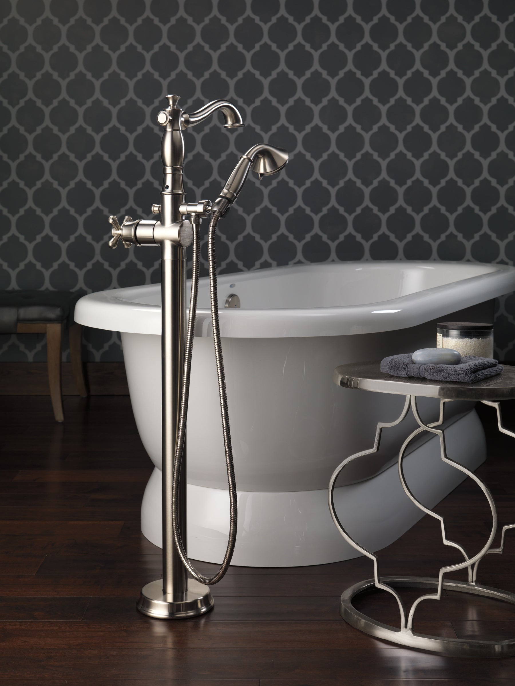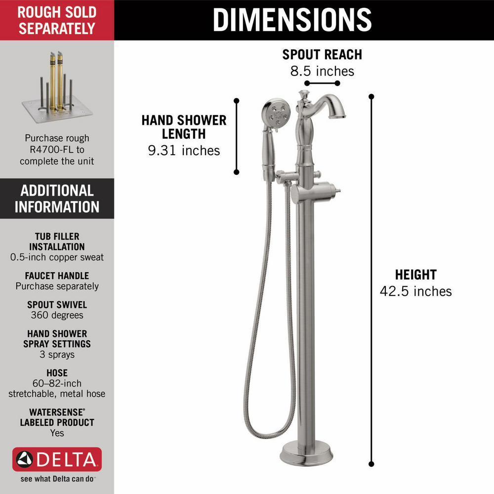 Traditional Floor Mount Freestanding Tub Filler Trim (Less Handles) - Stainless T4797-SSFL-LHP Delta