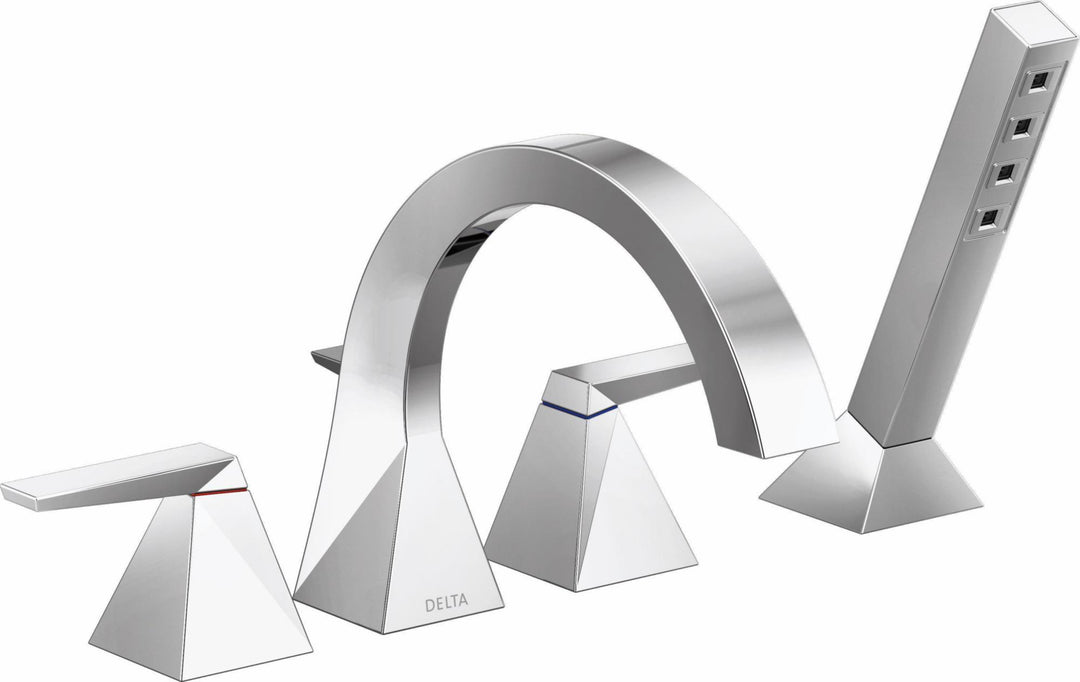 Trillian 4-Hole Roman Tub Faucet Trim with Hand Shower - Lumicoat Chrome T4746-PR Delta