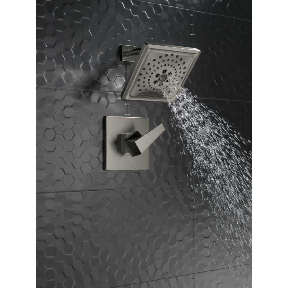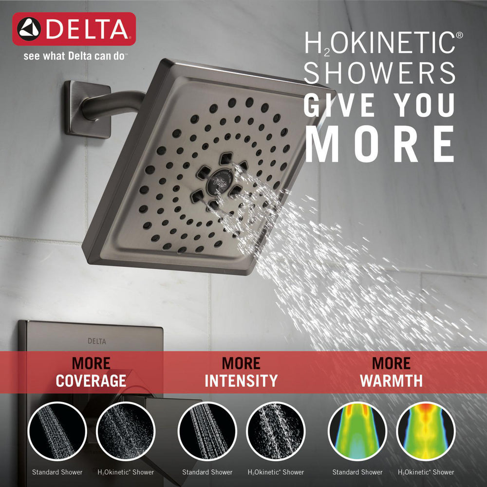 The prismatic faceting of the Trillian Bath Collection is an evolution of modern style that creates an edgy look which catches the light as well as the eye. Delta showers with Monitor pressure-balance valves are engineered to make sure you don’t experience a sudden and possibly unsafe change in water temperature as a result of running water elsewhere, such as using a dishwasher, flushing a toilet or running a washing machine. Our H2Okinetic Showers look different because they are different. H2Okinetic showers are powered by an innovative technology that sculpts the water into a unique wave pattern, giving you the feeling of more water and water pressure. You can install with confidence, knowing that Delta showers are backed by our Lifetime Limited Warranty.