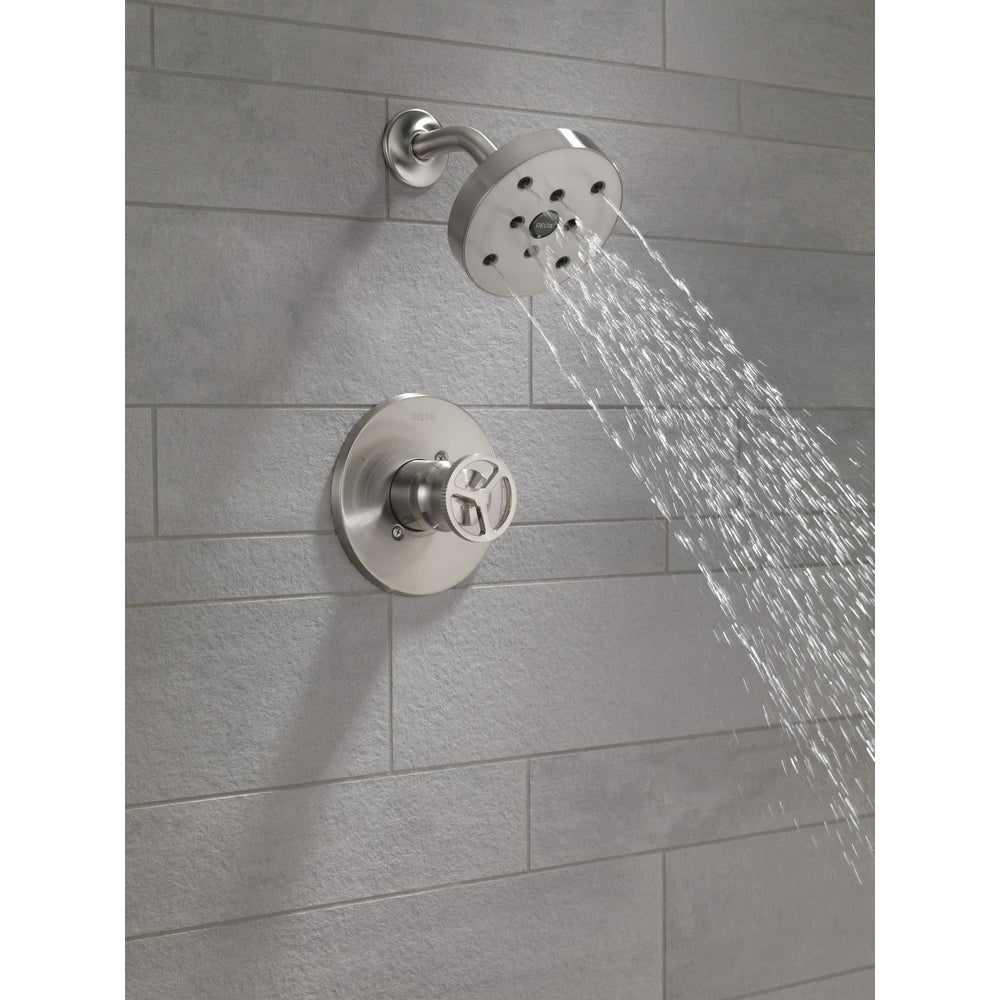 Inspired by the sleek elegance of modern European design, the Trinsic Bath Collection is perfect for any contemporary bath and now features a wheel handle option for an industrial look. Delta H2Okinetic Showers use advanced technology to sculpt water into a unique wave pattern that gives you 3X the coverage of a standard shower head, resulting in a truly drenching shower experience that provides more coverage, more warmth and more intensity. Delta showers with Monitor pressure-balance valves are engineered to make sure you don’t experience a sudden and possibly unsafe change in water temperature as a result of running water elsewhere, such as using a dishwasher, flushing a toilet or running a washing machine. You can install with confidence, knowing Delta products are backed by our Limited Lifetime Warranty.