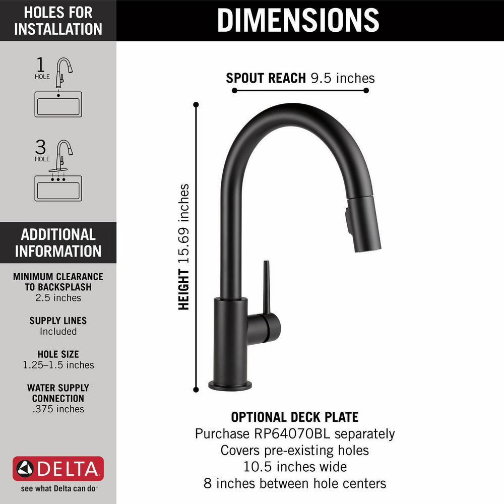 Delta MagnaTite Docking uses a powerful integrated magnet to pull your faucet spray wand precisely into place and hold it there so it stays docked when not in use. Delta faucets with DIAMOND Seal Technology perform like new for life with a patented design which reduces leak points, is less hassle to install and lasts twice as long as the industry standard*. Kitchen faucets with Touch-Clean Spray Holes allow you to easily wipe away calcium and lime build-up with the touch of a finger. You can install with confidence, knowing that Delta faucets are backed by our Lifetime Limited Warranty. *Industry standard is based on ASME A112.18.1 of 500,000 cycles.