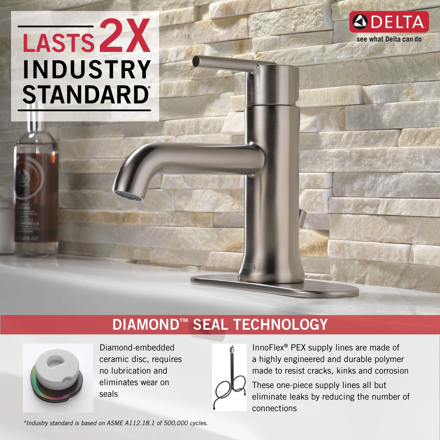 Inspired by the sleek elegance of modern European design, the Trinsic Bath Collection completes the look of any contemporary bath, from classic to rustic. Delta faucets with DIAMOND Seal Technology perform like new for life with a patented design that reduces leak points, is less hassle to install and lasts twice as long as the industry standard. Delta WaterSense labeled faucets use at least 20% less water than the industry standard — helping you save water without compromising performance. You can install with confidence, knowing that Delta faucets are backed by our Lifetime Limited Warranty.