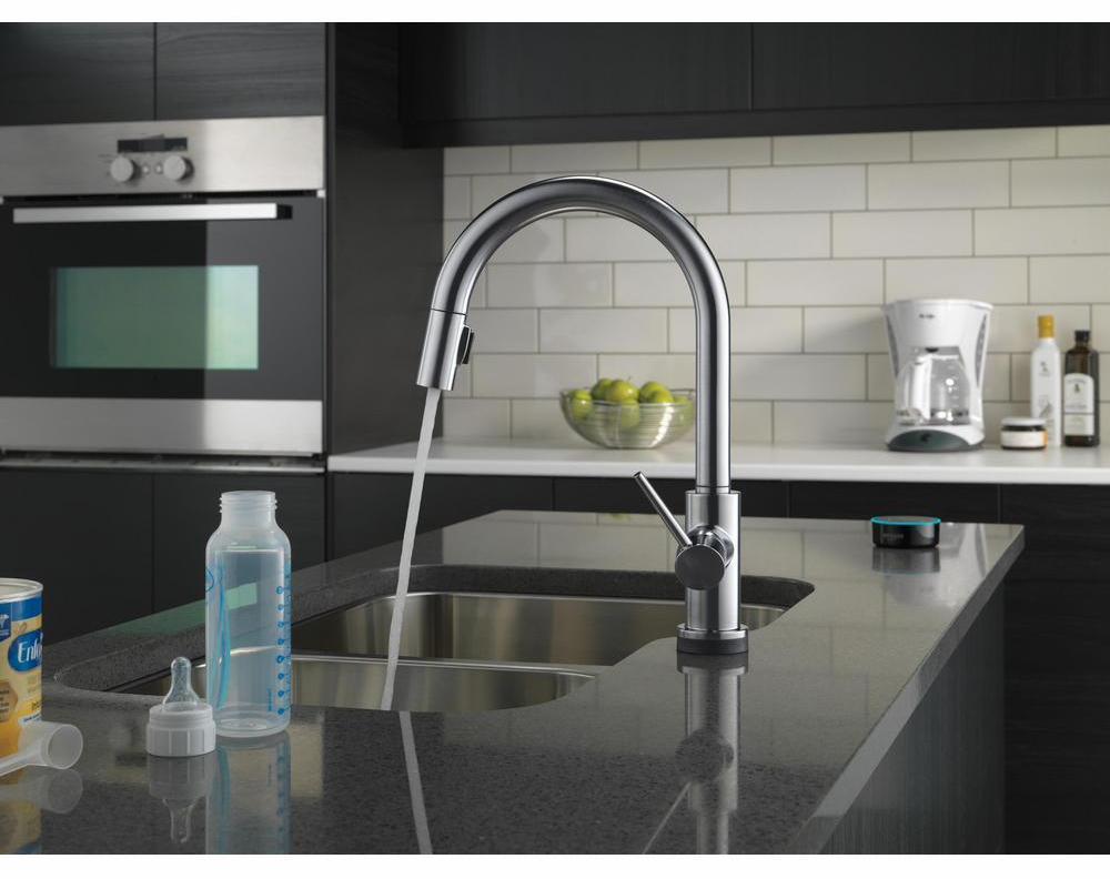The sleek elegance of modern design is embodied in the Trinsic Kitchen Collection. Increase the functionality of your kitchen with a deck-mounted soap dispenser. You can install with confidence, knowing that this Delta soap dispenser is backed by our Lifetime Limited Warranty.