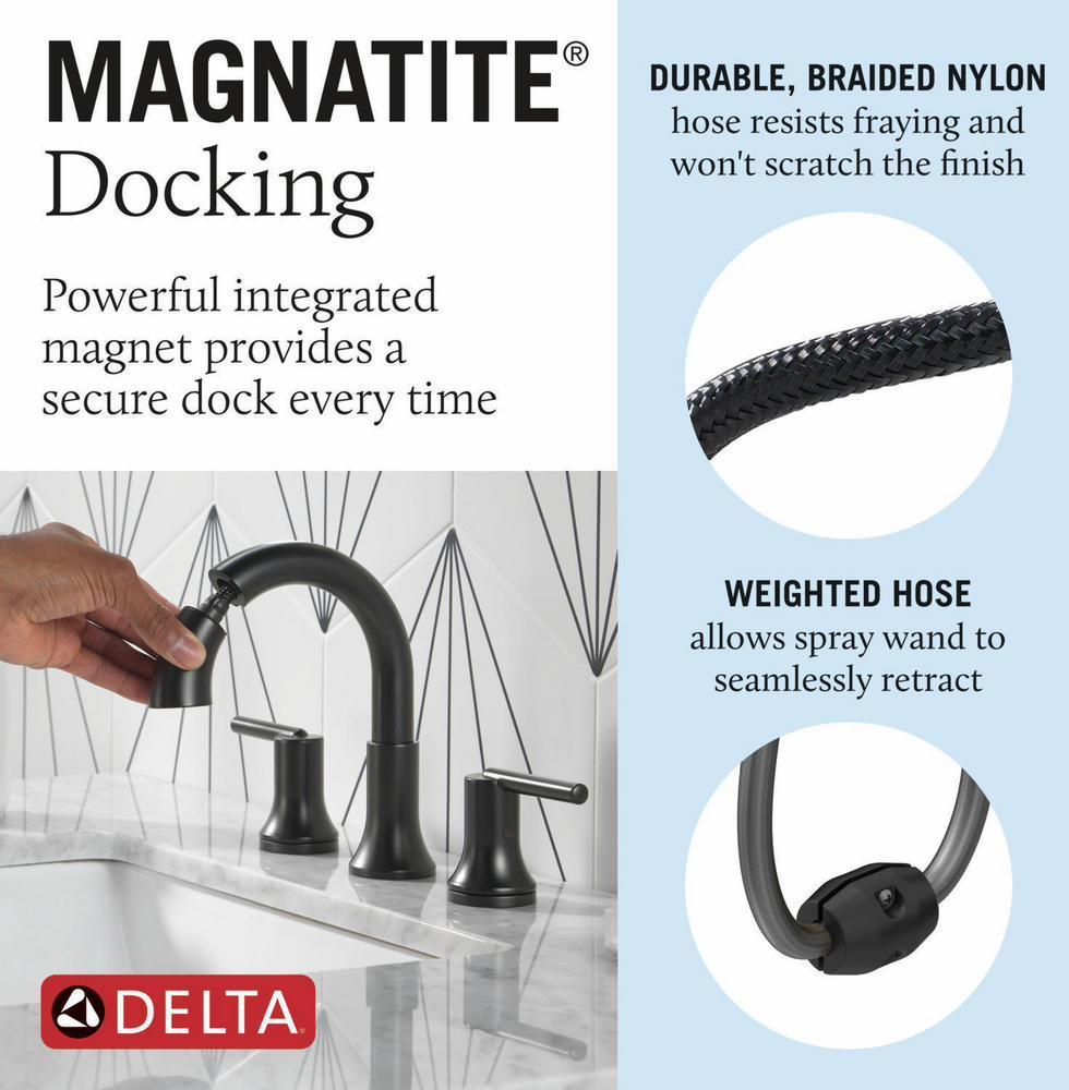 - MagnaTite® Docking uses a powerful integrated magnet to snap your faucet spray wand precisely into place keeping it docked when not in use