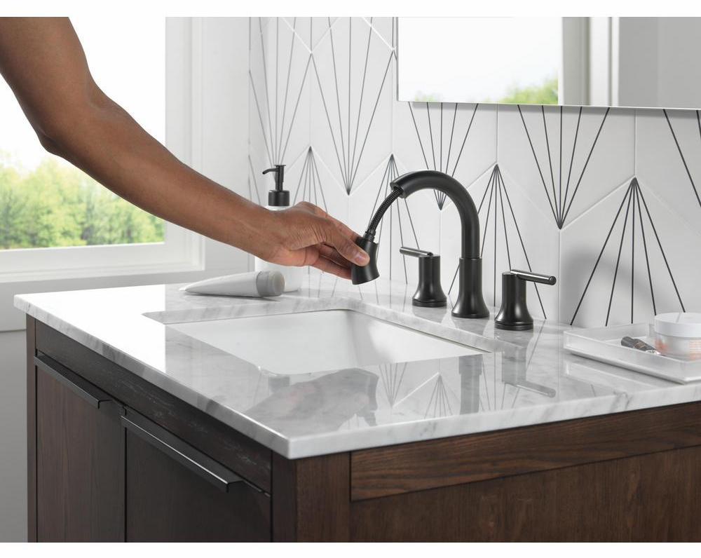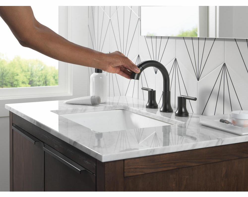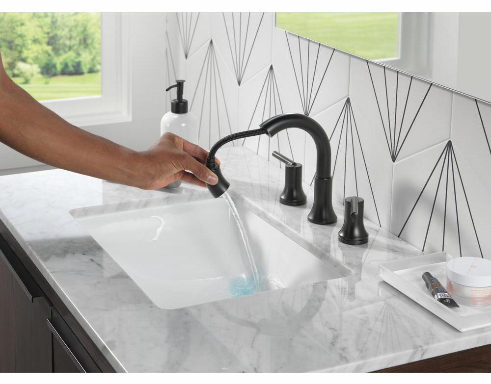 Inspired by the sleek elegance of modern European design, the Trinsic Bath Collection completes the look of any contemporary bath. The pull-down spray wand features Delta MagnaTite Docking which uses a powerful integrated magnet to pull your faucet spray wand precisely into place and hold it there so it stays docked when not in use. The Worry-Free Drain Catch is a simple solution to the common problem of pills, jewelry or other valuables washing down the drain. Delta faucets with Diamond Seal Technology perform like new for life with a patented design that reduces leak points, is less hassle to install and lasts twice as long as the industry standard. Delta WaterSense labeled faucets use at least 20% less water than the industry standard — helping you save water without compromising performance. You can install with confidence, knowing that Delta faucets are backed by our Lifetime Limited Warranty.