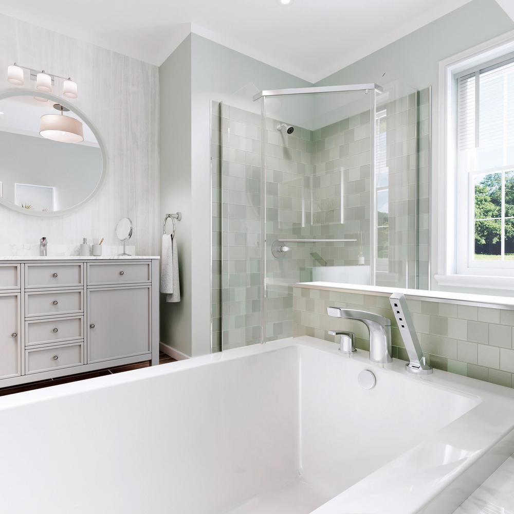 The Wynne Bath Collection features a distinctly urban aesthetic. The ideal combination of structural lines and flowing curves, Wynne perfectly complements the modern bath.