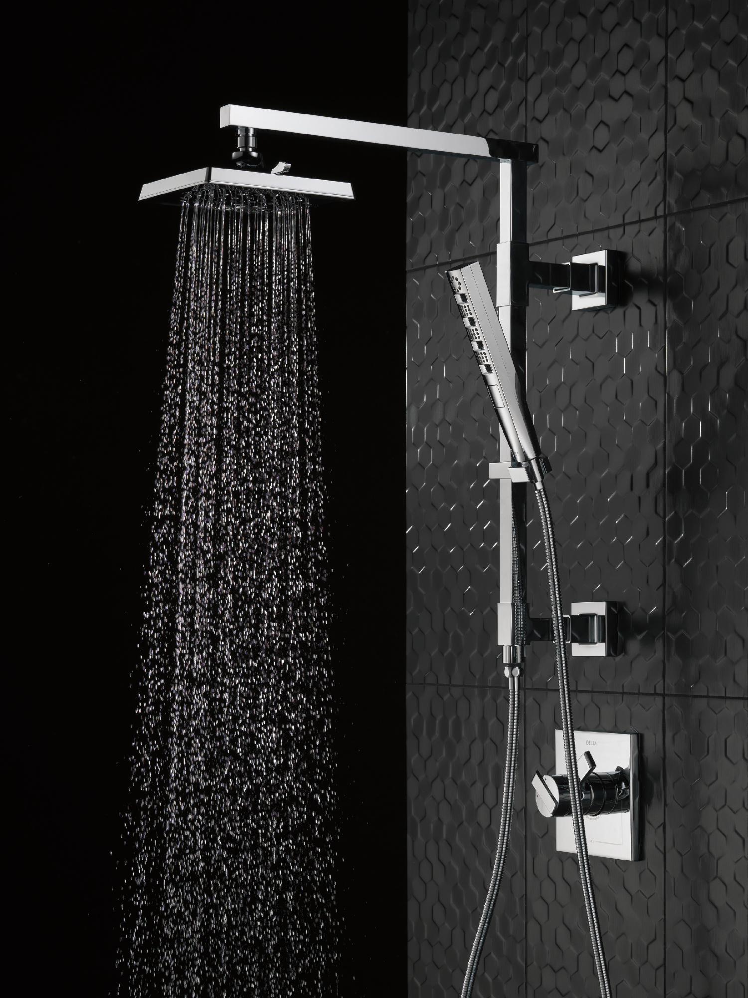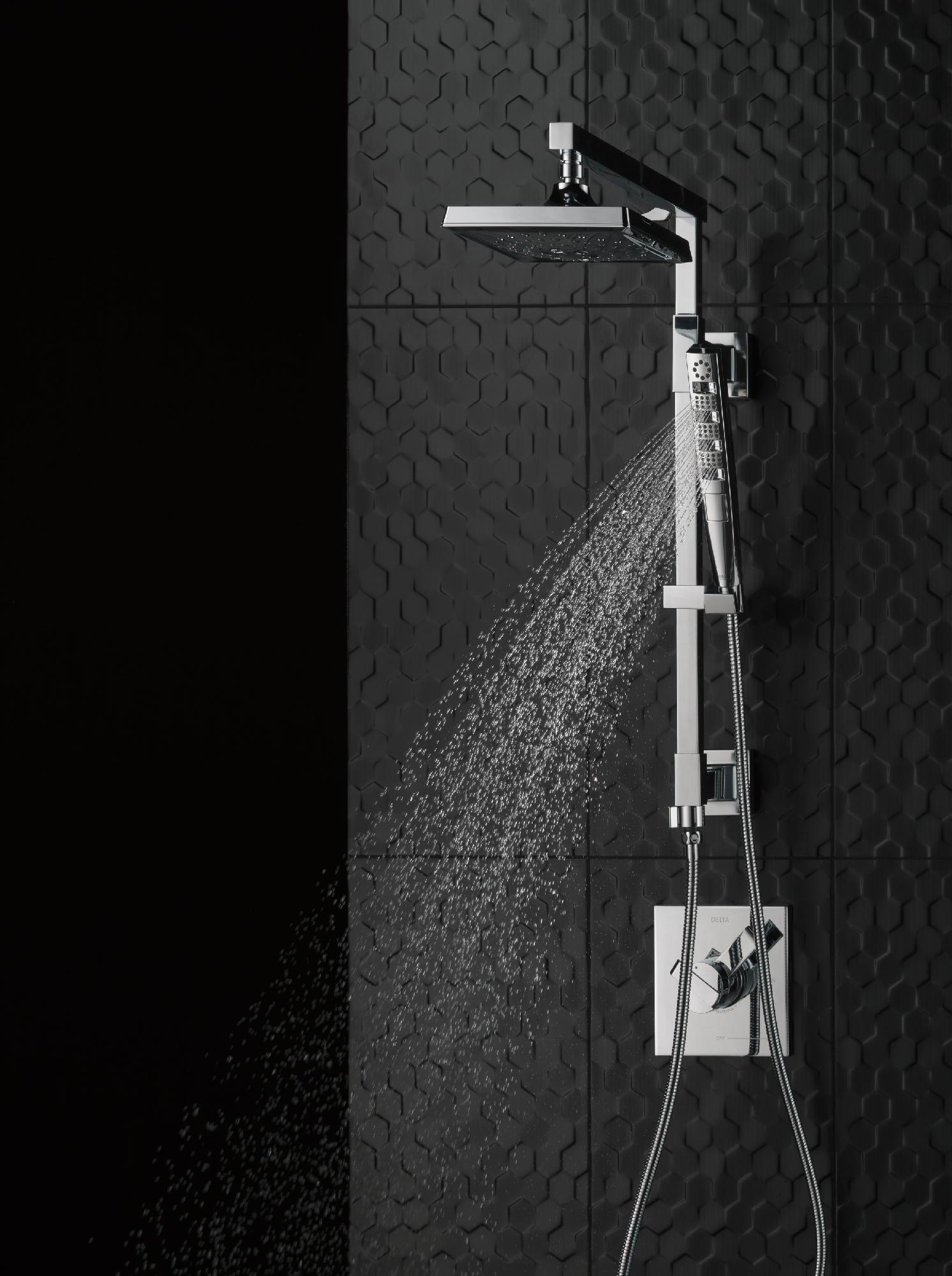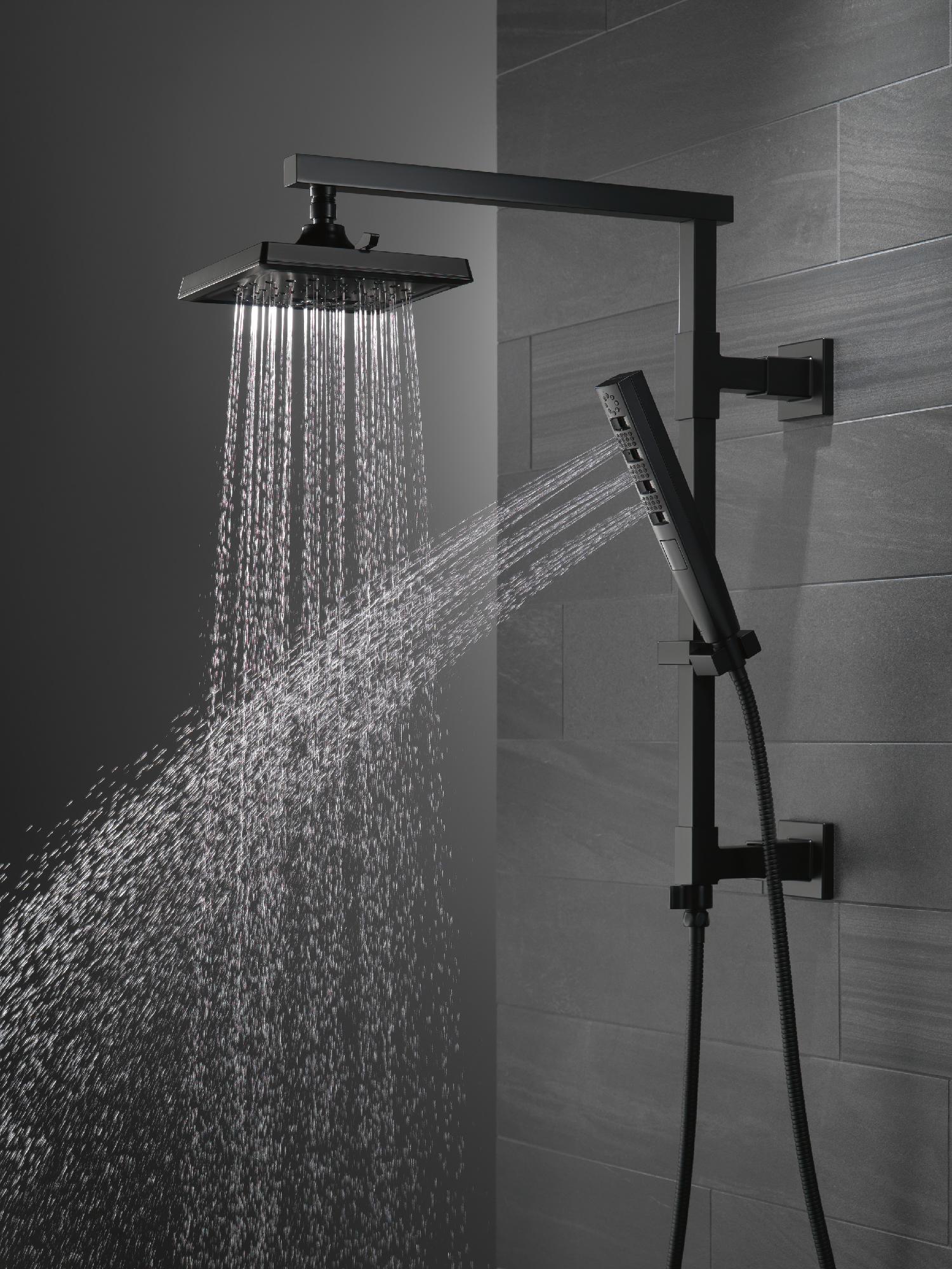 Experience a better shower with the control and flexibility of a Delta hand shower. Great for showering yourself or your loved ones and pets, as well as for keeping your shower and tub clean. Delta H2Okinetic Showers look different because they are different. Using advanced technology, H2Okinetic showers sculpt water into a unique wave pattern, giving you 3X the coverage of a standard shower head.* The end result is a shower that provides more coverage, more warmth and more intensity for a truly drenching shower experience. So go ahead and indulge, because now you can enjoy the feeling of more water without using more water. The Matte Black finish makes a statement in your space, cultivating a sophisticated air and coordinating flawlessly with most other fixtures and accents. With bright tones, Matte Black is undeniably modern with a strong contrast, but it can complement traditional or transitional spaces just as well when paired against warm nuetrals for a rustic feel akin to cast iron. While other products may gather unsightly mineral build-up over time, Delta soft rubber Touch-Clean spray holes allow any mineral residue to simply be wiped away for an instantly refreshed look – with no need for soaking or the aid of chemical cleaners. The pause setting gives you ample space for shaving, lathering and other shower tasks, then easily restarts the water with the temperature where you left off. This spray setting helps you conserve water, so you can worry less about depleting your supply of hot water - and you help the environment too.