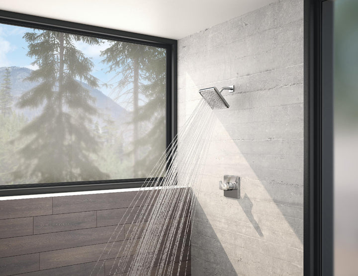 The Zura design is a precise marriage of rounded, rectangular and triangular elements and offers innovative, geometric styling to complement Delta's current contemporary lineup. All Delta tub and shower faucets are engineered to keep the water temperature within a safe ±3.6° F (±1.7° C)*. This technology makes sure your family doesn’t experience a sudden and possibly unsafe change in water temperature as a result of running water elsewhere, such as using a dishwasher, flushing a toilet or running a washing machine. Installing a Delta MultiChoice Universal Valve makes it faster, easier and less expensive to upgrade style, finish and functionality later. Delta H2Okinetic Showers look different because they are different. Using advanced technology, H2Okinetic showers sculpt water into a unique wave pattern, giving you 3X the coverage of a standard shower head.* The end result is a shower that provides more coverage, more warmth and more intensity for a truly drenching shower experience. With separate handles for volume and temperature control, this Delta tub/shower provides a more refined showering experience. Simply set the water at your preferred temperature and turn the shower on or off with the volume control handle - without interrupting your set temperature. While other products may gather unsightly mineral build-up over time, Delta soft rubber Touch-Clean spray holes allow any mineral residue to simply be wiped away for an instantly refreshed look – with no need for soaking or the aid of chemical cleaners. The pause setting gives you ample space for shaving, lathering and other shower tasks, then easily restarts the water with the temperature where you left off. This spray setting helps you conserve water, so you can worry less about depleting your supply of hot water - and you help the environment too. Delta thermostatic valves use TempAssure Technology to protect you and your family from sudden temperature changes. Designed to look like new for life, Brilliance finishes are developed using a proprietary process that creates a durable, long-lasting finish that is guaranteed not to corrode, tarnish or discolor. Take the chill out of contemporary with the eloquent warmth of Champagne Bronze in your bath. This vibrant, gold finish provides a vivid splash of contrast to your space for a look that's simultaneously modern and nimble, able to pair elegantly with traditional, transitional, and contemporary décor. Delta WaterSense labeled faucets, showers and toilets use at least 20% less water than the industry standard—saving you money without compromising performance.