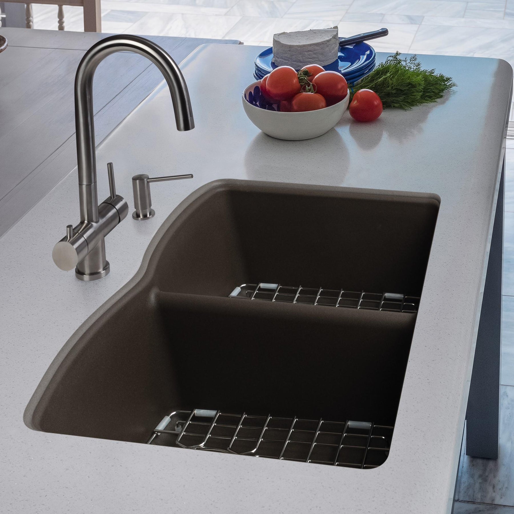 - Divide and Conquer: A double bowl sink provides convenience so that you can multi-task. The side by side sinks allow for the garbage disposal to always be accessible when the main side of the sink is filled with water or dishes.