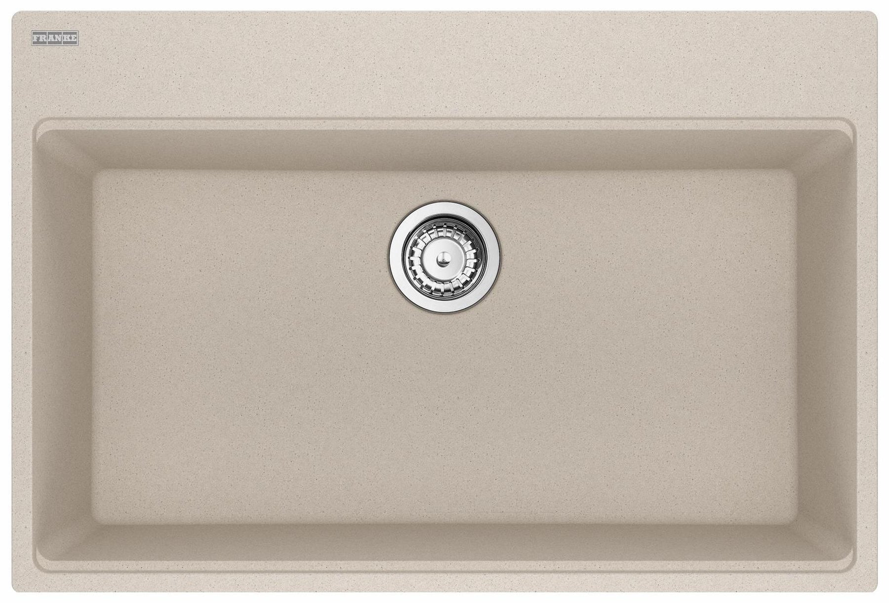31.0-in. x 20.88-in. Champagne Granite Single Bowl Kitchen Sink. Maris sinks are equipped with deep capacity bowls that can easily fit baking trays, pots, and pans to be washed with maximum ease. With our easy-to-use integrated ledge system, you’ll accomplish more with your sink while making the most of your surrounding counter space. Our integrated antimicrobial Sanitized technology helps reduce odors and ensures safe protection against bacteria and mildew in your sink. The rear drain maximizes the usable surface of the bowl and creates extra cabinet space beneath the sink. Maris granite sinks are scratch-resistant, fade-resistant, and impact resistant and will retain their new appearance for years. Sink strainer assembly included.
