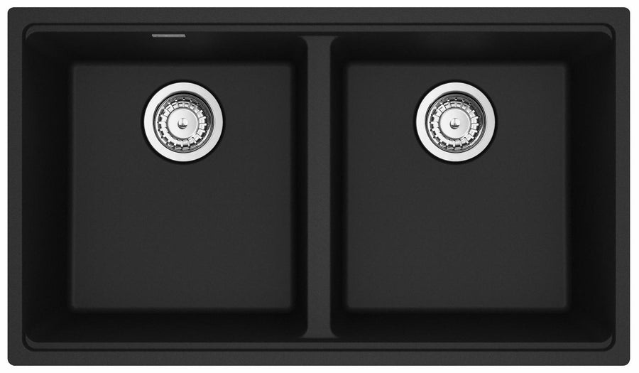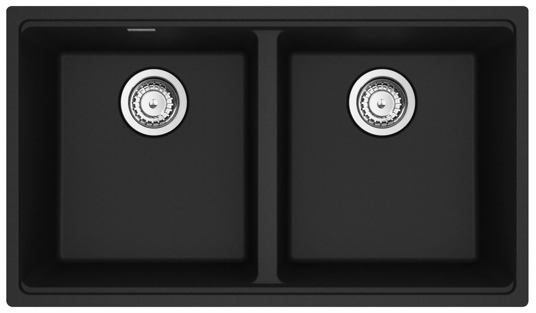 31.0-in. x 17.81-in. Matte Black Granite Double Bowl Kitchen Sink. Maris sinks are equipped with deep capacity bowls that can easily fit baking trays, pots, and pans to be washed with maximum ease. With our easy-to-use integrated ledge system, you’ll accomplish more with your sink while making the most of your surrounding counter space. Our integrated antimicrobial Sanitized technology helps reduce odors and ensures safe protection against bacteria and mildew in your sink. The rear drain maximizes the usable surface of the bowl and creates extra cabinet space beneath the sink. Maris granite sinks are scratch-resistant, fade-resistant, and impact resistant and will retain their new appearance for years. Sink strainer assembly included.