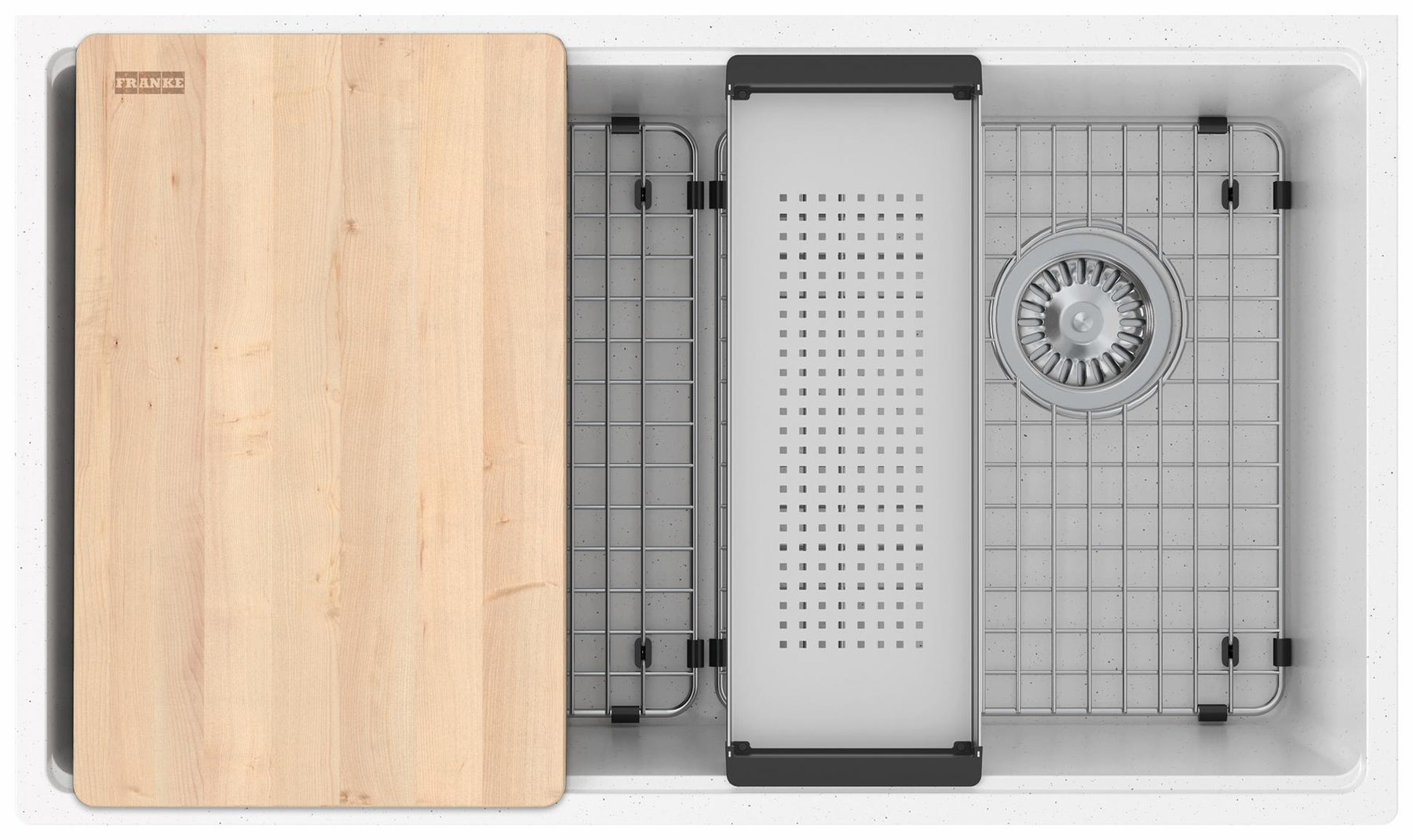 Maris 33" Fragranite 1 Bowl Undermount Kitchen Sink with Accessories - Polar white MAG11031OW-PWT-WKC Franke