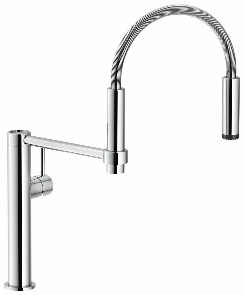 - Flexible hose with 360-degree spout swivel range for maximum reach