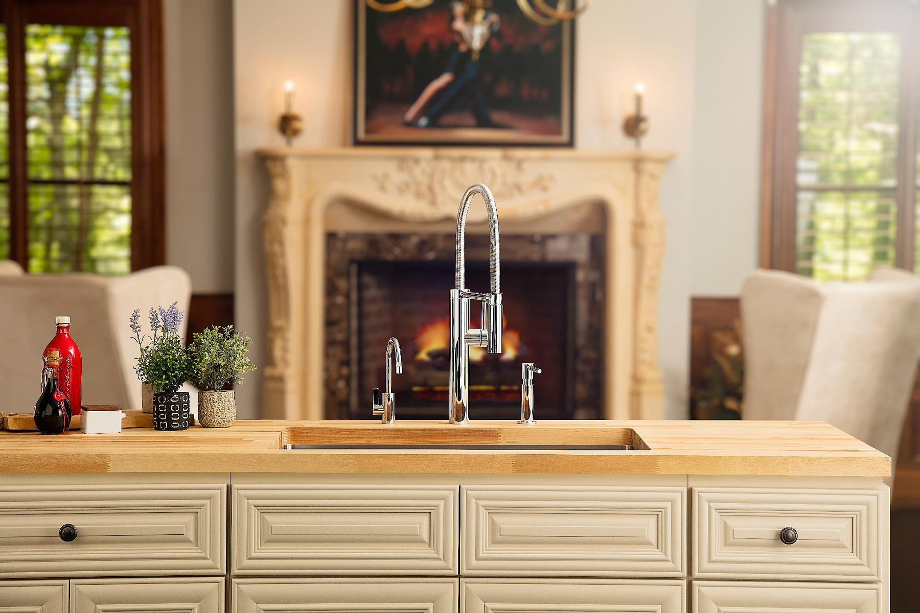 - 21 5/8" ultra-tall high-arc kitchen faucet provides a strong focal point and great functionality