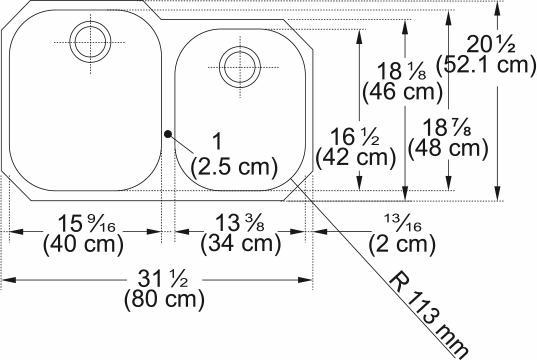 • Interior Dimensions: On Left - Bowl 15.56-in. left-to-right x 18.88-in. front-to-back x 8.88-in deep, On Right - Bowl 13.88x-in. left-to-right x 16.5-in. front-to-back x 6.88-in deep