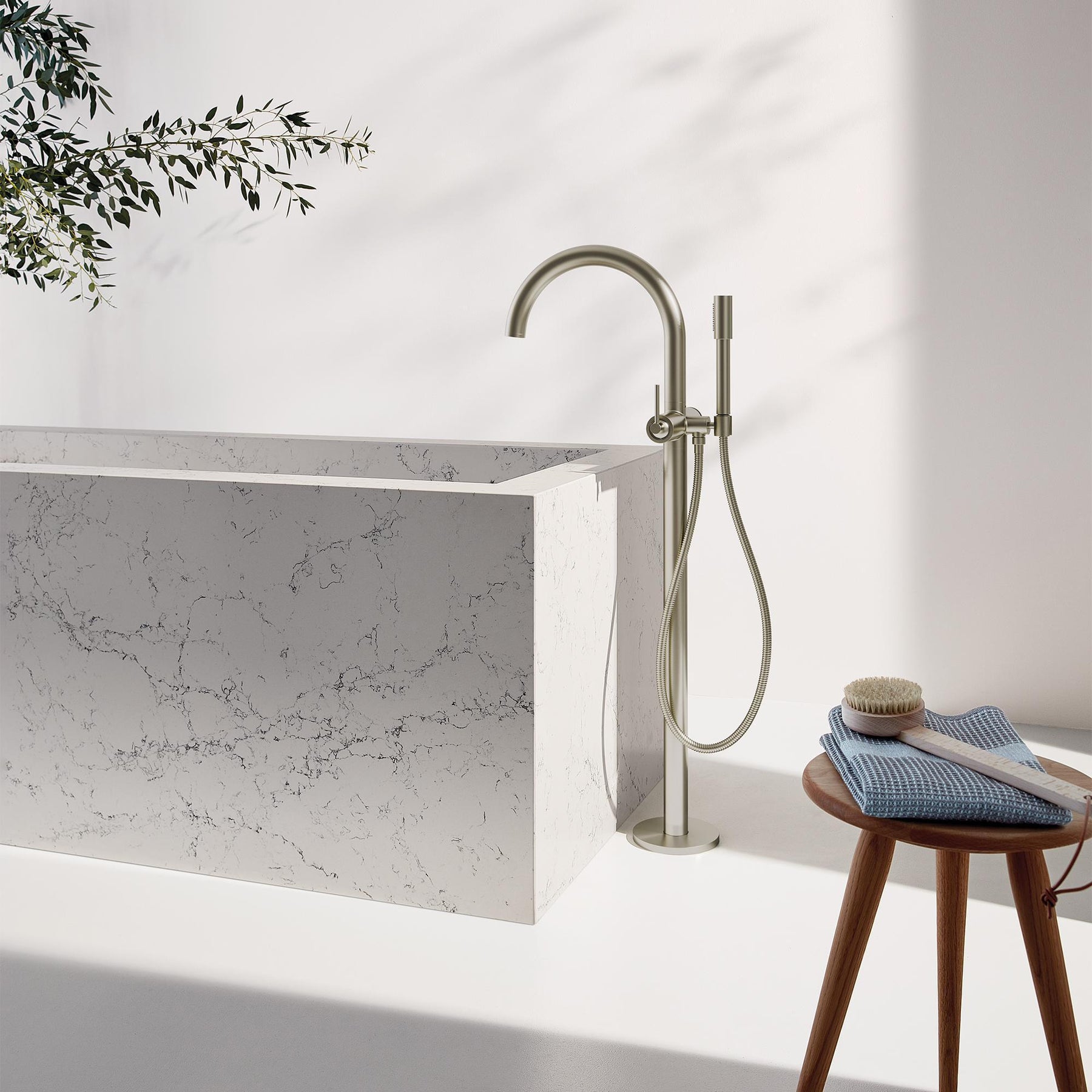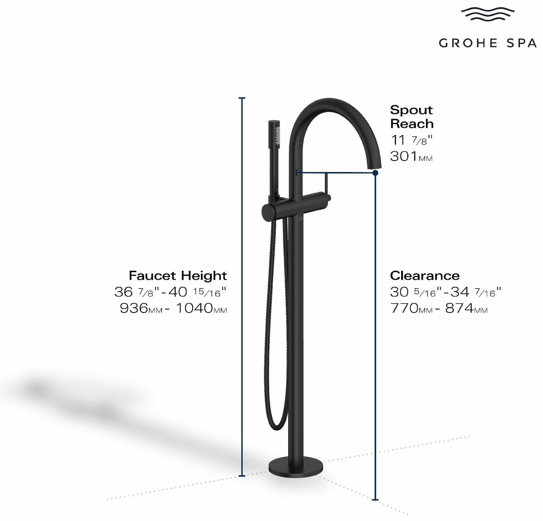 The GROHE SPA Atrio One-Handle Freestanding Tub Filler with Hand Shower enhances a soothing, at-home spa setting with its clean, minimalist design. Precision crafted, this solid brass tub filler is engineered to deliver an exceptional experience, ensuring superior functionality and visual beauty in today’s most luxurious bathrooms.