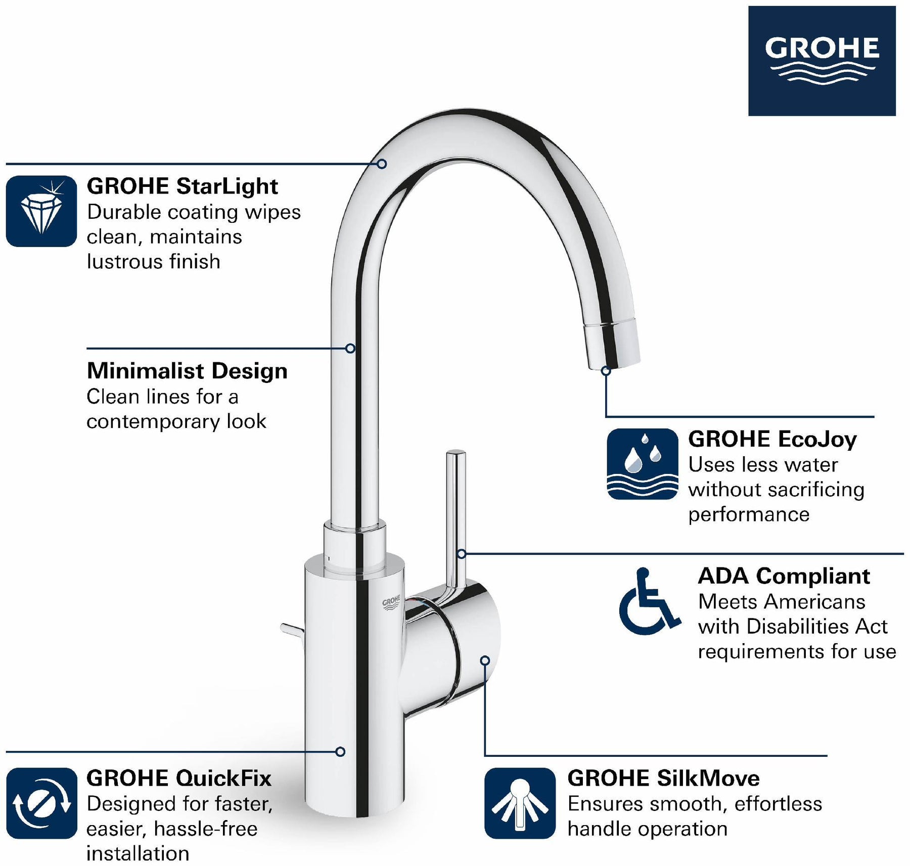 - GROHE SilkMove — advanced ceramic cartridge delivers a lifetime of ultra-smooth operation and precise control of the water temperature and volume