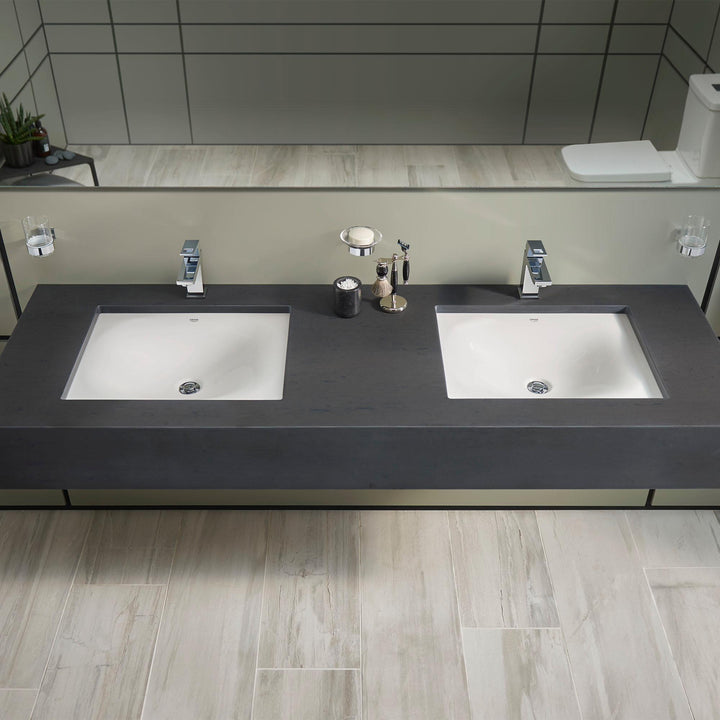 Reflecting the exceptional character of every GROHE design, the Eurocube Undermount Bathroom Sink inspires with its smooth, contemporary aesthetic. The Eurocube sink is the perfect complement to today’s luxury counter tops and vanities, adding distinction with its gently curved bowl and rich luster. Complete your bathroom design with the Eurocube toilet (sold separately) and specially selected GROHE faucets (sold separately). With GROHE, coordinating the elements of an elegant bathroom is an effortless way to create a space that fosters harmony and relaxation.