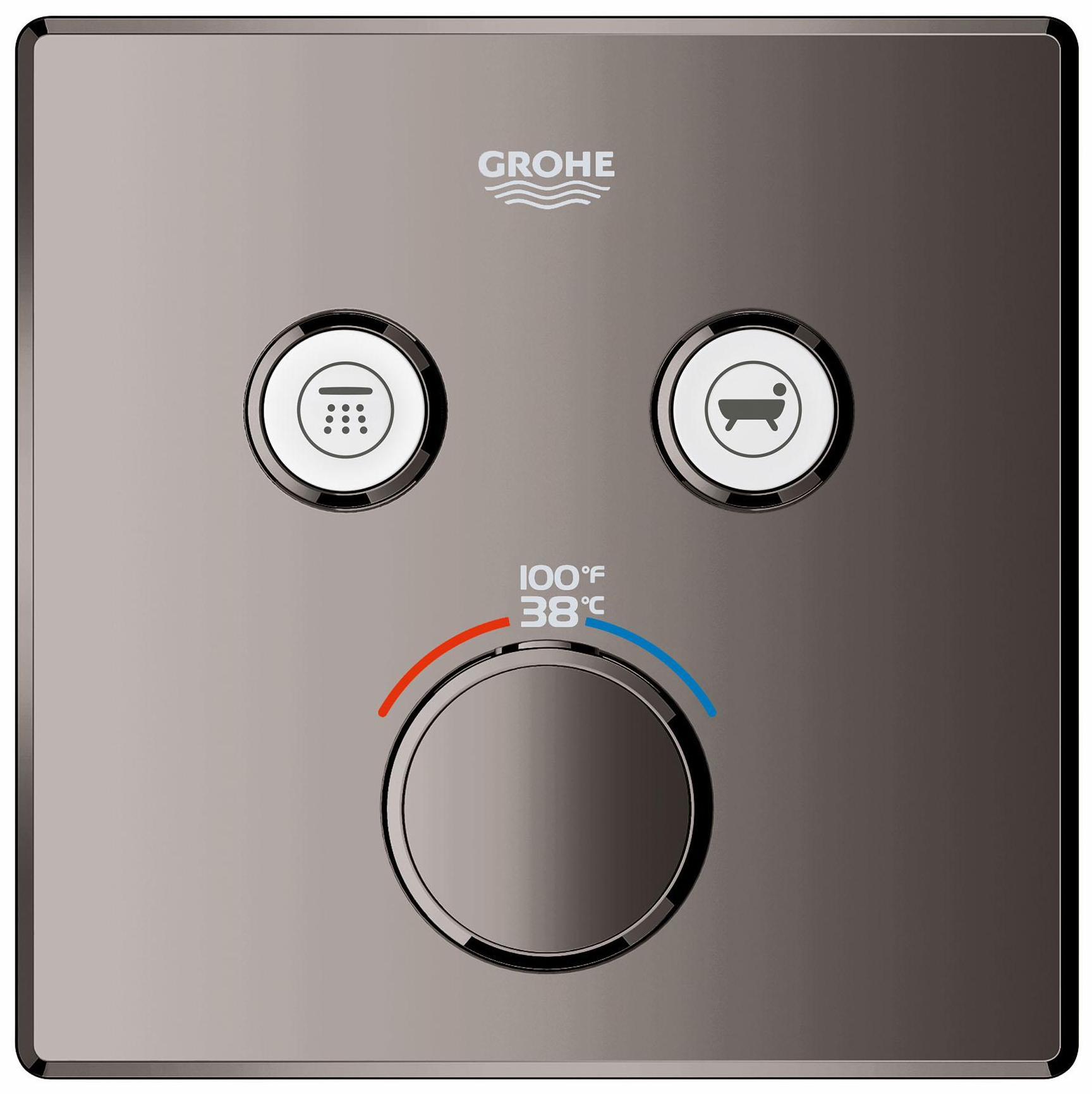 The Grohtherm SmartControl Dual Function Thermostatic Trim from GROHE is a slim, contemporary design that will enhance any bathroom and make showering more enjoyable. Innovative and intuitive to use, the dual-function SmartControl lets you adjust water volume from two spray sources with the simple push-turn of a button. Easily switch between sprays, experience each spray individually or enjoy both at the same time. It features integrated GROHE Turbostat technology to keep water temperature consistent for the duration of your shower, preventing any unpleasant hot/cold fluctuations. Please note that this product must be installed in combination with the GROHE Rapido SmartBox (35601000).