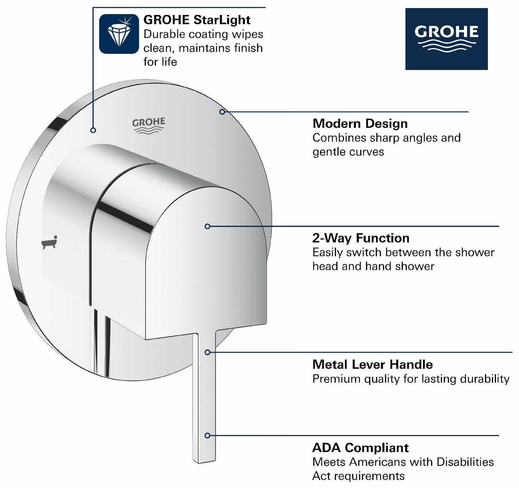 Elegant or minimalist, GROHE Plus combines the clean, linear angles of a cube with the gentle curves of a circle making it a distinctive choice no matter the design aesthetic. Engineered to bring comfort and convenience to your bathroom, it features the durable GROHE StarLight coating for easy care and lasting beauty.