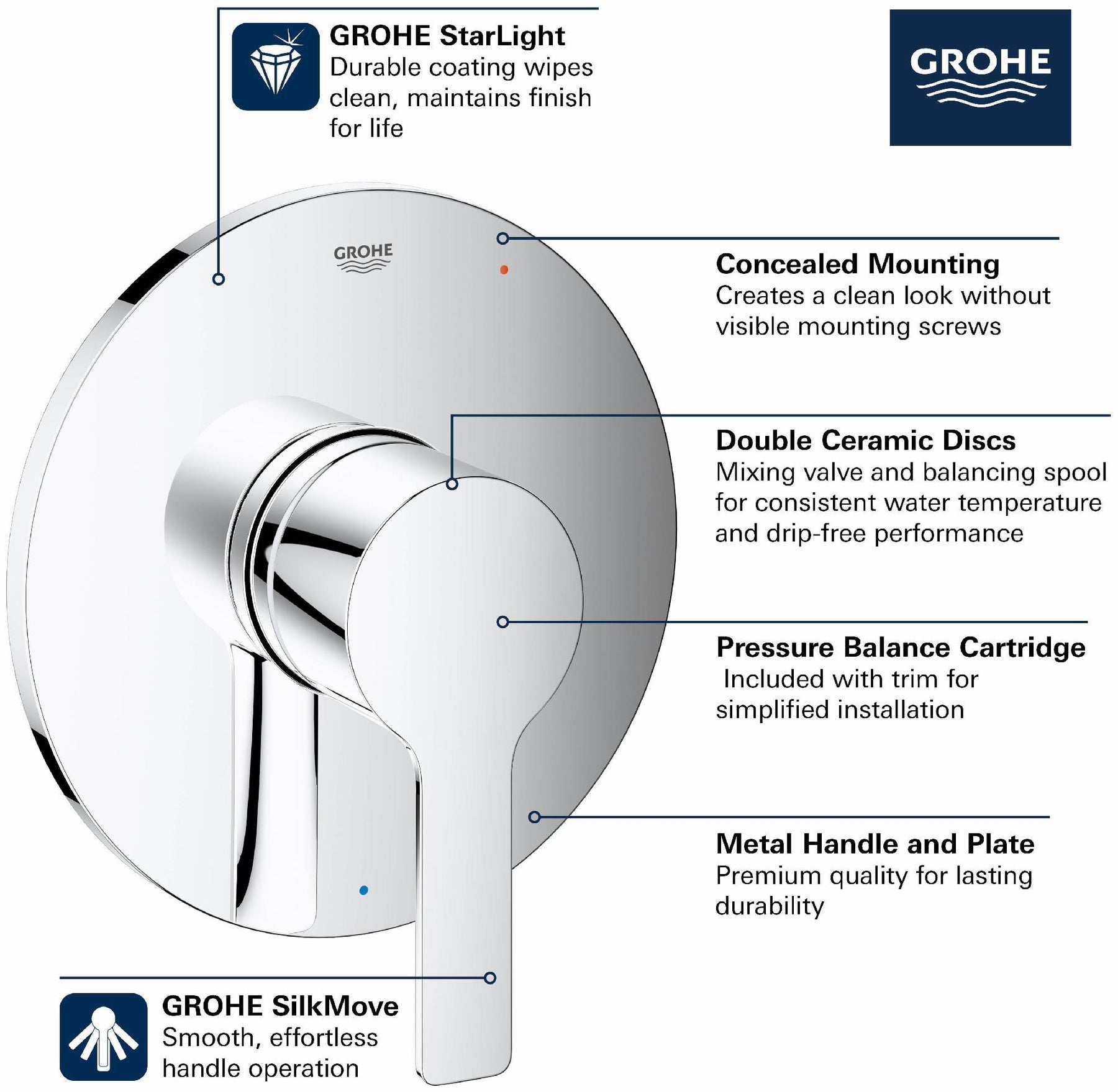 • For use with GrohSafe 3.0 rough-in valves, sold separately