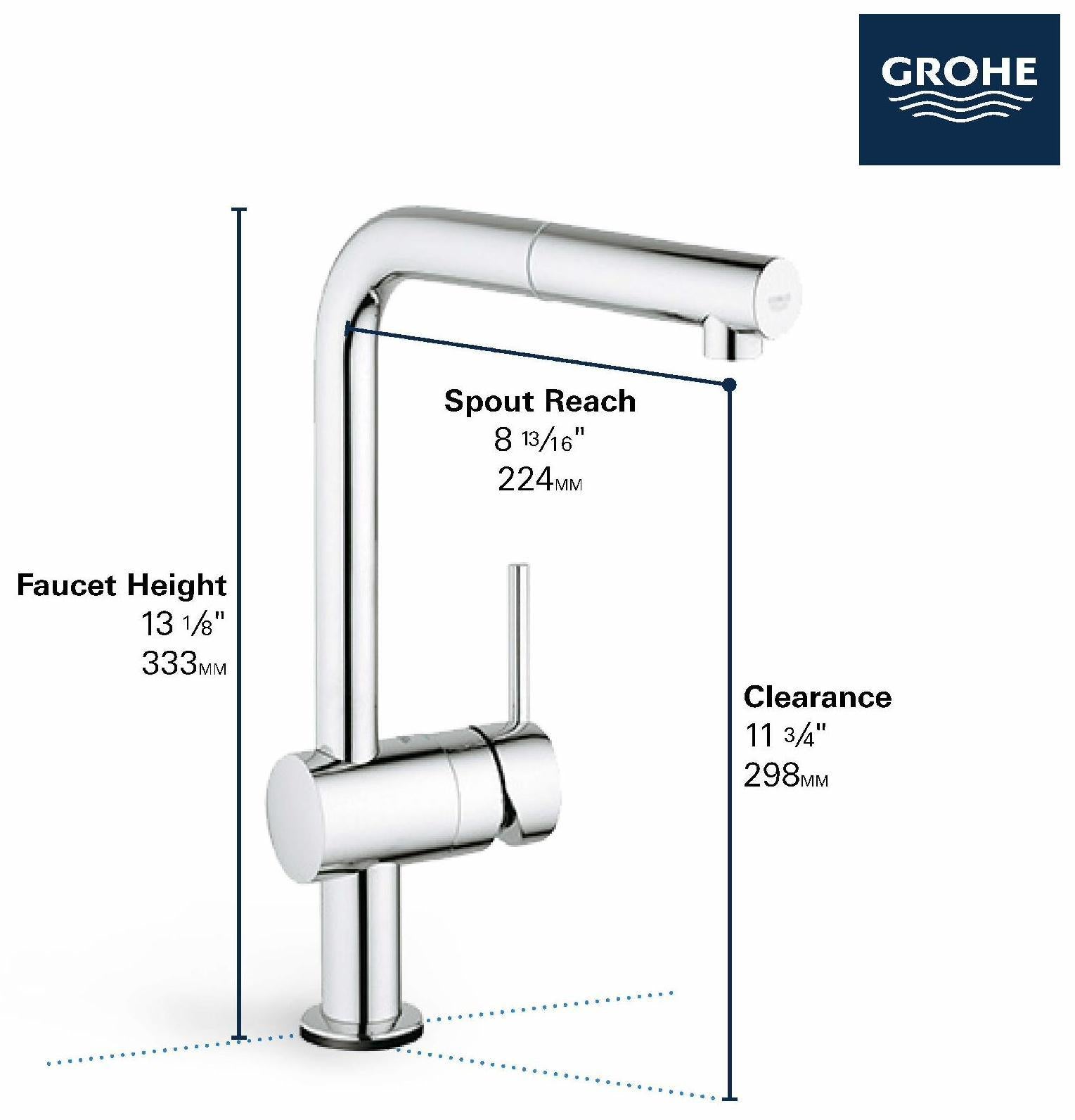 - PULL-OUT SINGLE SPRAY FAUCET: Laminar spray delivers a smooth, even flow, a hallmark of GROHE engineering