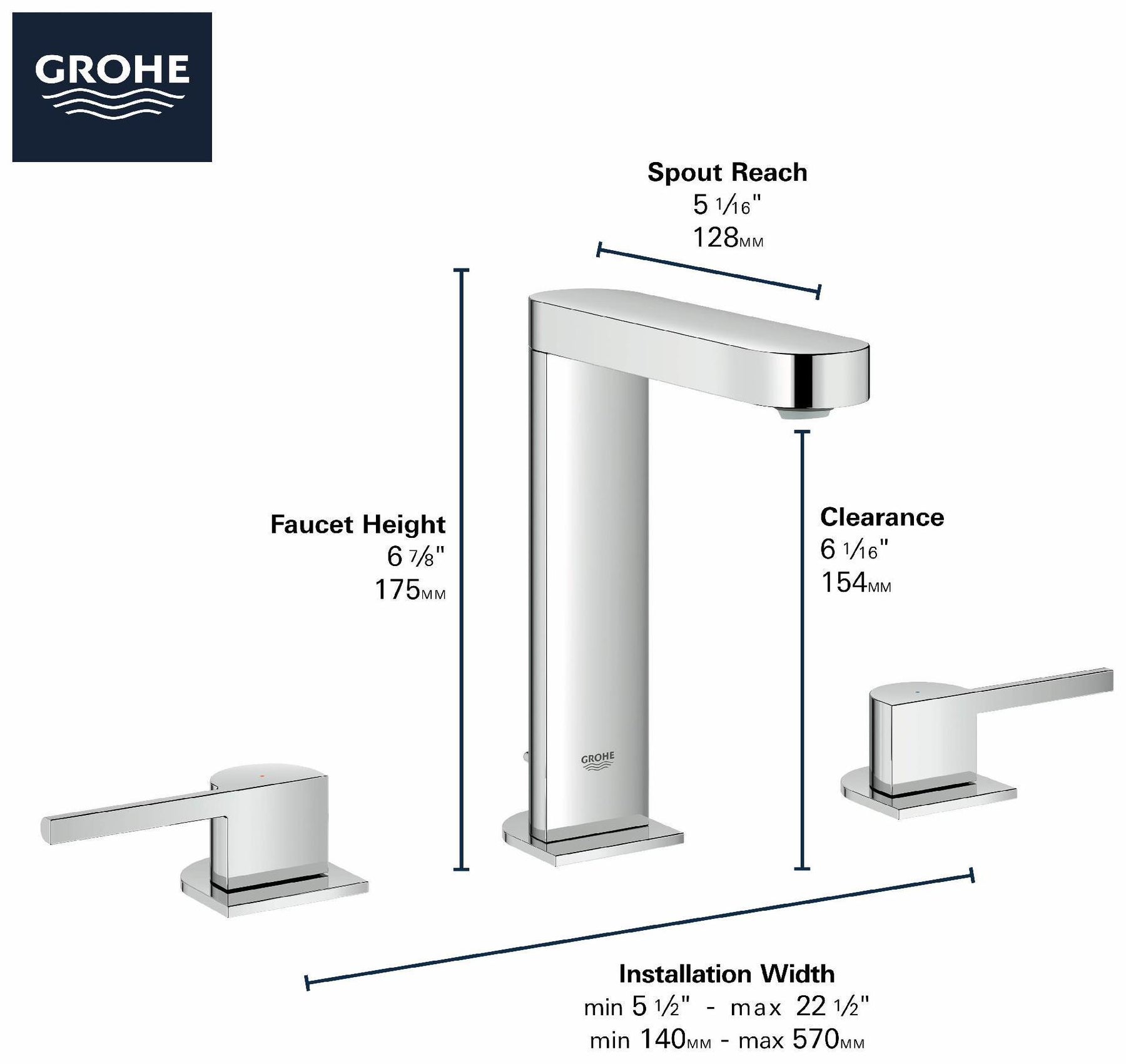 Elegant or minimalist, the GROHE Plus Wideset Bathroom Faucet combines the clean, linear angles of a cube with the gentle curves of a circle making it a distinctive choice no matter the design aesthetic. Engineered to bring comfort and convenience to your bathroom, the Plus Wideset Faucet features the durable GROHE StarLight coating for easy care and lasting beauty.