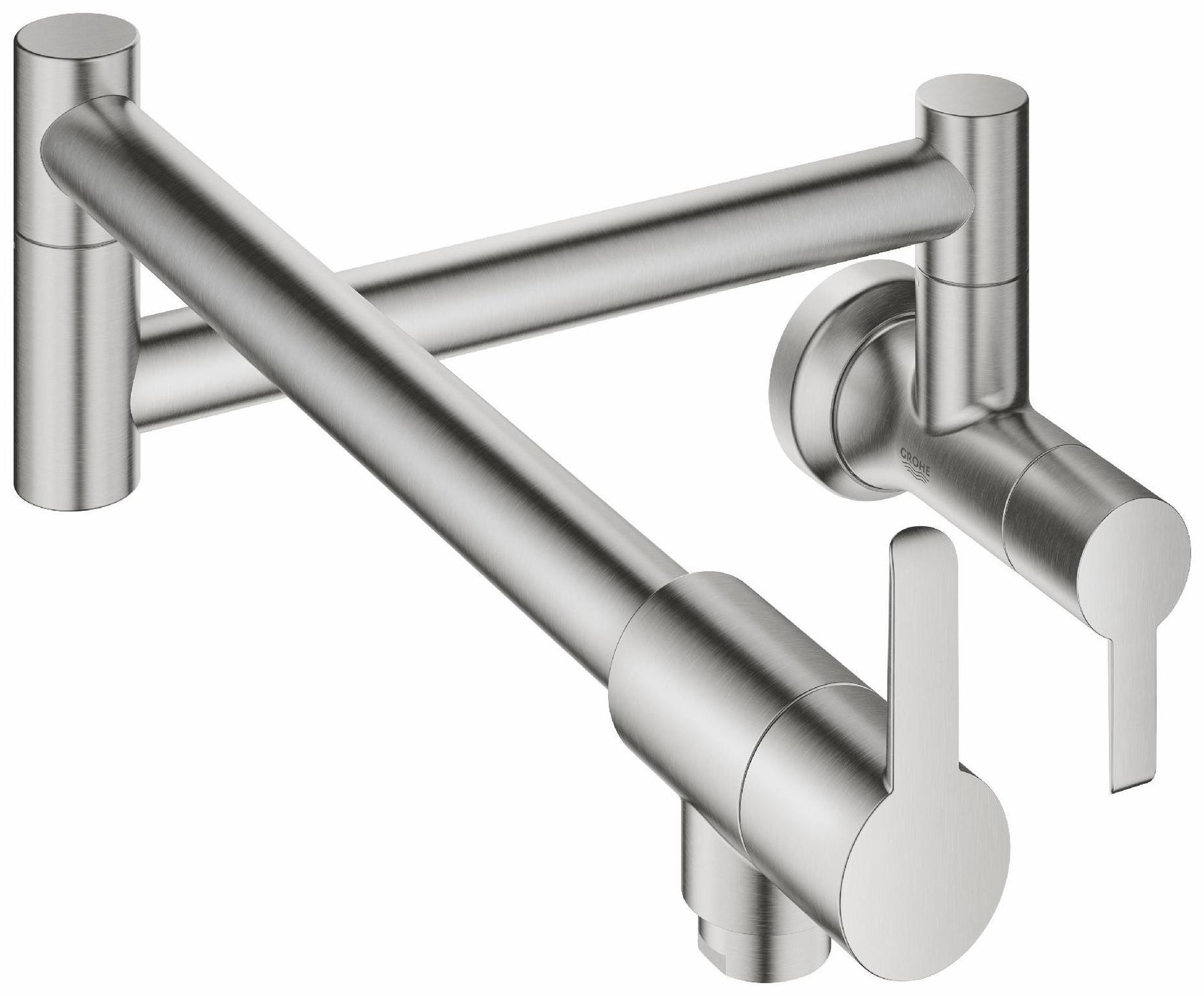 Installed on the wall over your stovetop, the GROHE Zedra Pot Filler Faucet adds sophistication and convenience in today’s home. This sleek, contemporary, cold-water faucet eliminates the need to carry heavy water-filled pots from sink to stove. Jointed arm pivots out to easily reach each burner and tucks back against the wall when not in use. Two-handle on/off operation is double protection from leakage, especially important when mounted over the stovetop. Finished with GROHE StarLight, Zedra ensures wipe-clean ease from splatters and maintains its luster for life. GROHE Zedra is the new name for Ladylux L2.
