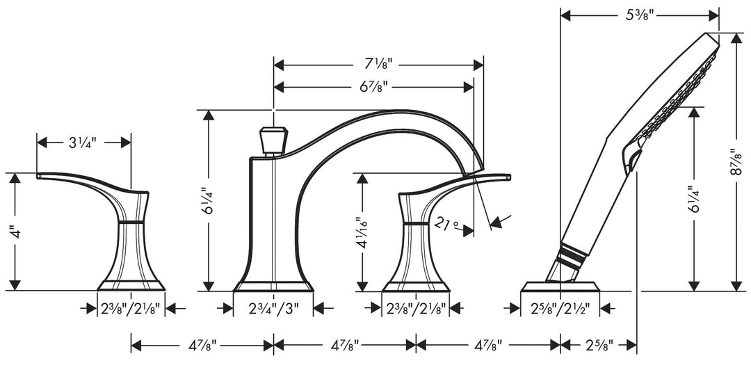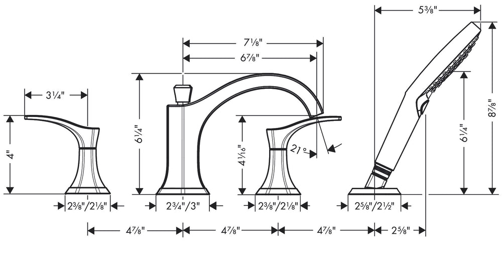 4-Hole Roman Tub Set Trim with 1.75 GPM Handshower