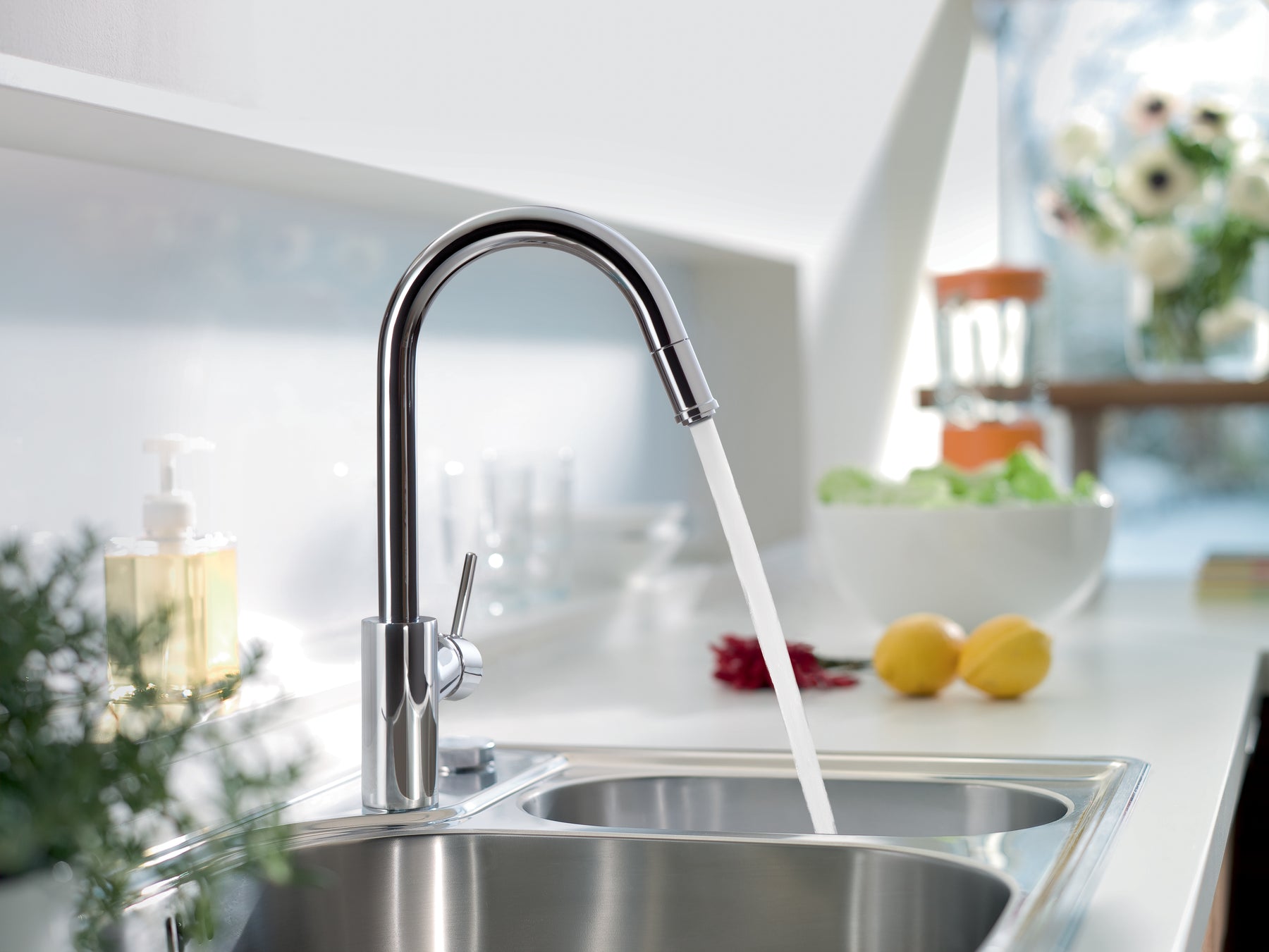 - Single handle kitchen faucet, connection hoses, fixation set, installation manual