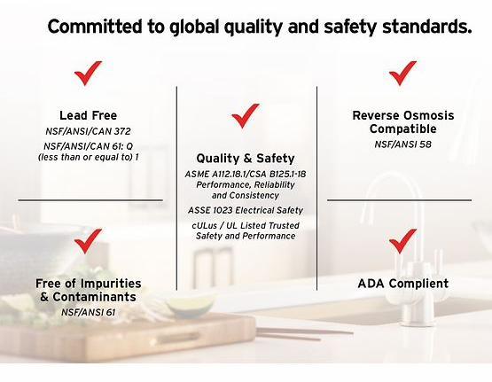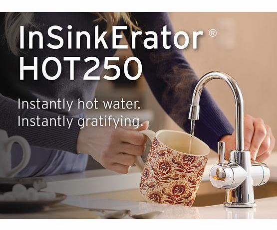 • InSinkErator HOT250 instant hot and cold water dispenser system that is compliant with NSF/ANSI/CAN 372 and NSF/ANSI/CAN 61: Q<1 lead-free standards