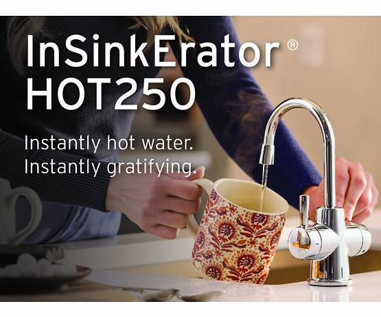 - InSinkErator HOT250 instant hot and cold water dispenser system that is compliant with NSF/ANSI/CAN 372 and NSF/ANSI/CAN 61: Q<1 lead-free standards