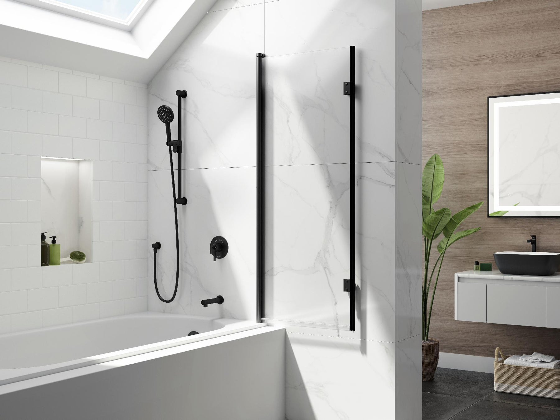 Flip 90 46" x 56" Pivoting Tub Shield - Matte Black DR1450-160-000 Kalia