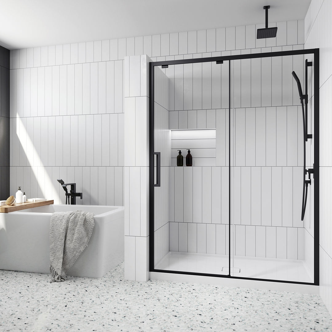 Ikonik 60" x 79" Sliding Shower Door Fixed Panel (Box 1 of 2) - Matte Black DR1841-160-003 Kalia
