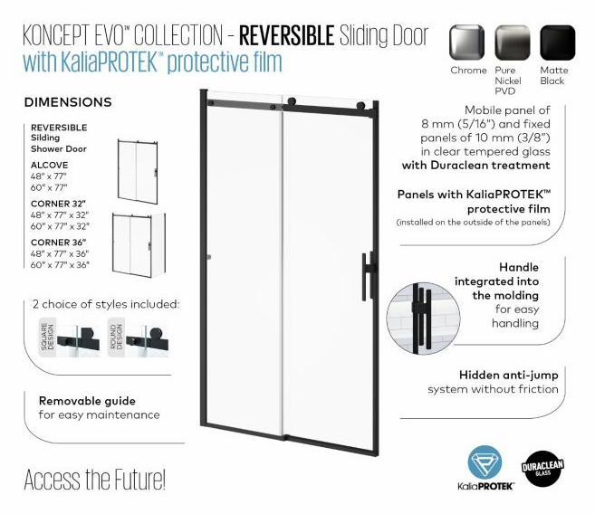 Koncept Evo 48'' x 77'' Sliding Shower Door (Reversible) - Chrome DR2130-110-005 Kalia