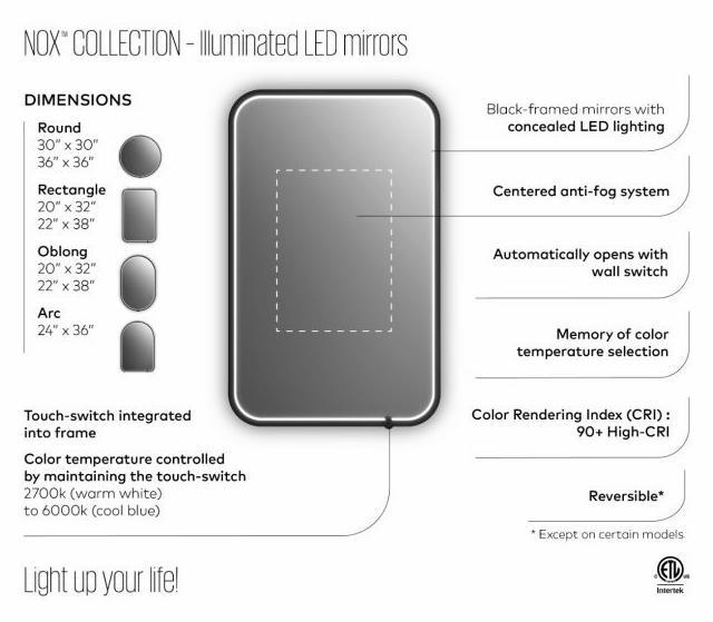 Nox 22" x 38" Oval LED Lighted Mirror - Black MR2204-570-001 Kalia