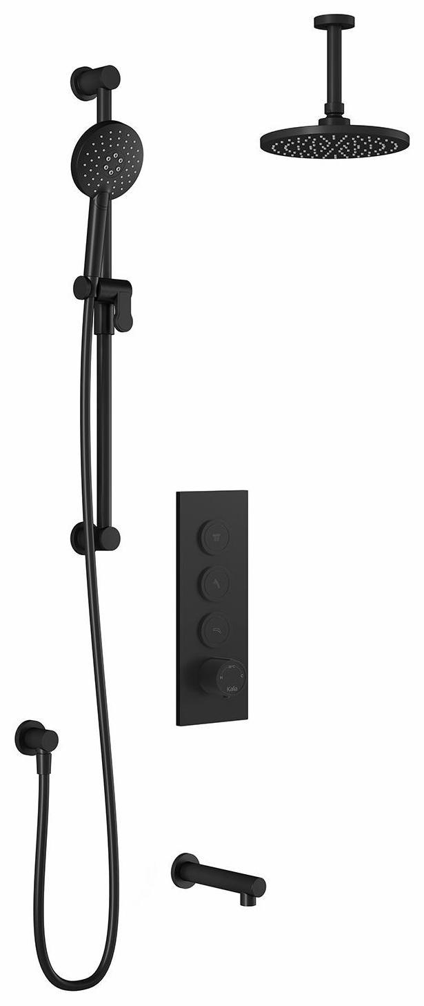 RoundOne TB3 Thermostatic Push-Button Shower System with Vertical Ceiling Arm (Less Valve) - Matte Black BF2067-160-001 Kalia