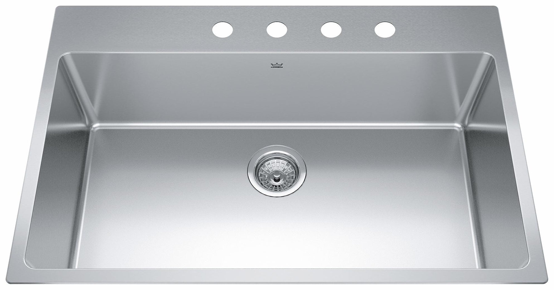 Brookmore Collection 33-in x 22-in Drop in 4-Hole Single Bowl Stainless Steel Kitchen Sink. The Brookmore stainless steel sink collection will create something truly unique that fits both prepping and cleaning needs. Made with high-quality 18-gauge stainless steel with a rich chromium content that helps shield the material from corrosion and prevents bacterial growth. This sink features the EZ Torque™ simplified fastener system that lets you quickly drop and drill your sink into place, securely locking the sink to the countertop. The spacious 9" deep bowl is perfect for soaking and washing stacks of dishes, and the sound-dampening system goes to work to reduce the noise caused by a garbage disposal or running water.