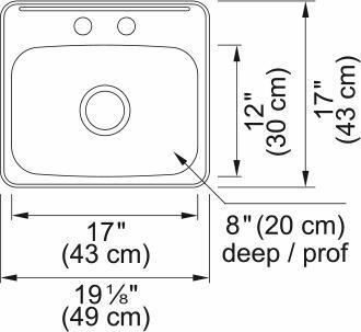 Steel Queen 20-1/8" 3-Hole 1 Bowl Drop-In Laundry Sink - Stainless Steel QSL2020-10-3 Kindred