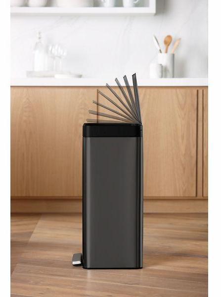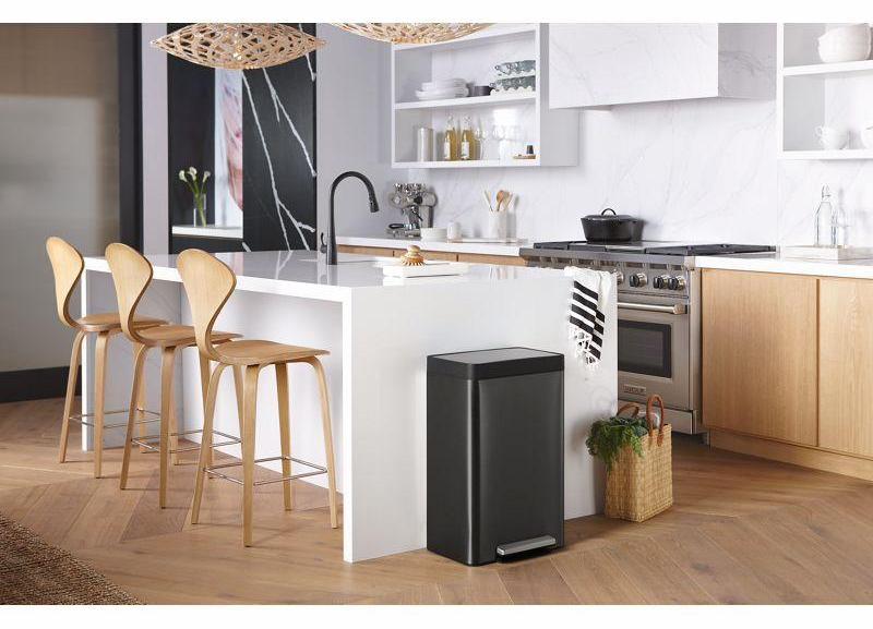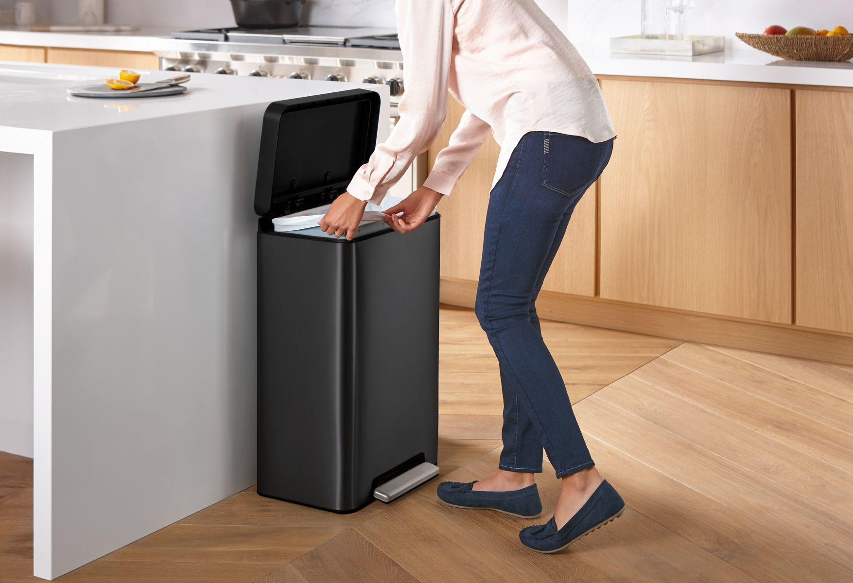 Crafted with thoughtful details and smart functionality, the Kohler step can collection will simplify your daily routine at home and meet the style demands of its surroundings. This 13-gallon rectangular step can has been designed to fit any brand of 13-gallon trash bags. It opens with a sturdy foot pedal, allowing for hands-free operation. The trash can has an efficient footprint with clean lines and flush features, so it can be placed right against the wall or cabinet. A raised liner and rim-lock make bag changes easy, and the fingerprint-proof finish stays cleaner longer.