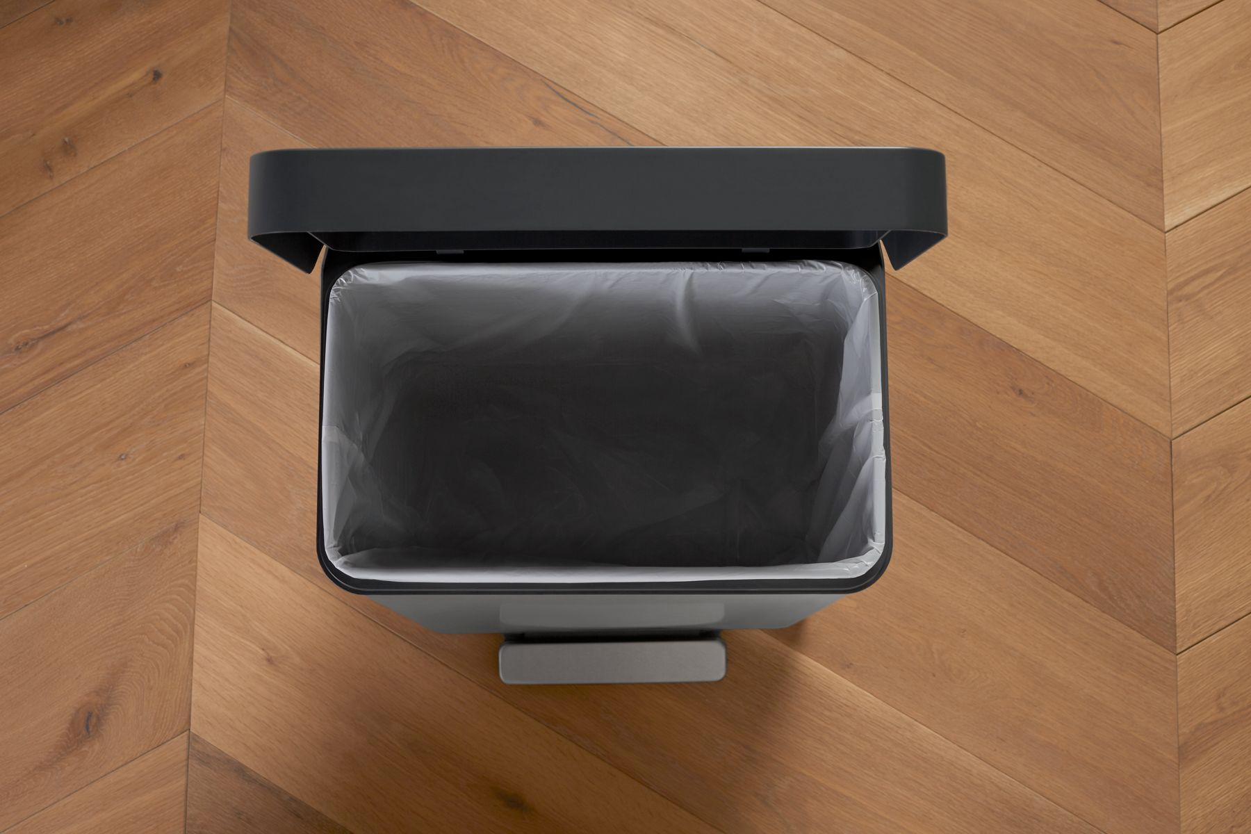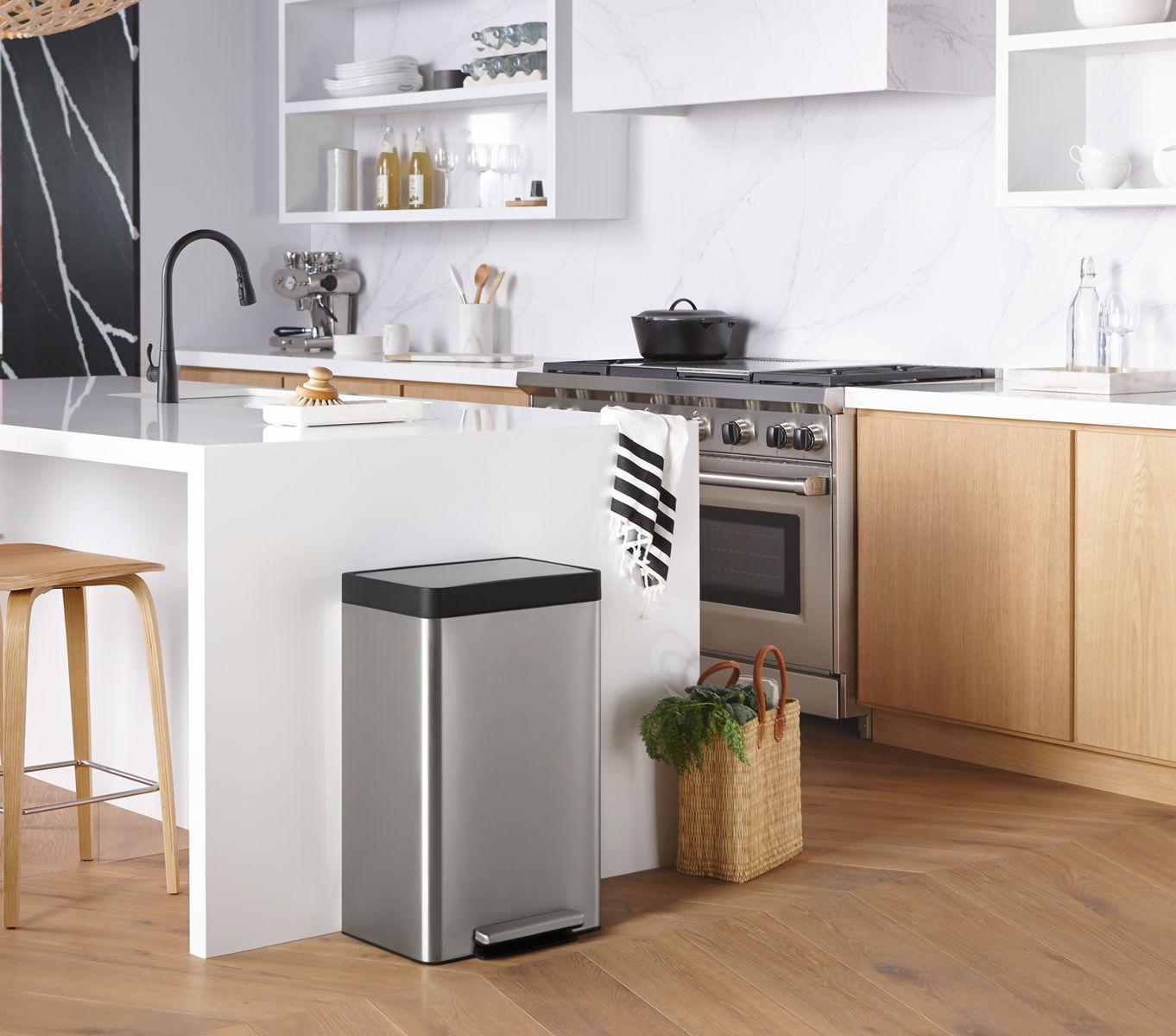 Crafted with thoughtful details and smart functionality, the Kohler step trash can collection will simplify your daily routine at home and meet the style demands of its surroundings. This 13-gallon rectangular step trash can has been designed to fit any brand of 13-gallon trash bags. It opens with a sturdy foot pedal, allowing for hands-free operation. The trash can has an efficient footprint with clean lines and flush features, so it can be placed right against the wall or cabinet. A raised liner and rim-lock make bag changes easy, and the fingerprint-proof finish stays cleaner longer.