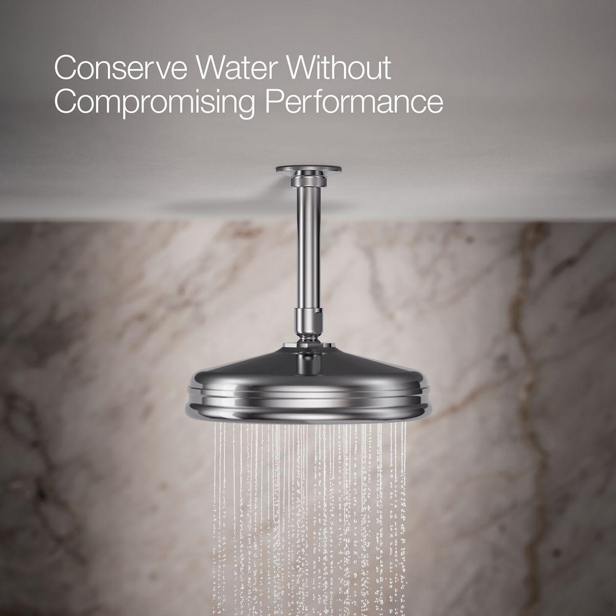 Enjoy a shower that simulates the soaking deluge of a warm summer downpour. This traditional-style rainhead features innovative Katalyst air-induction technology, which efficiently mixes air and water to produce large water droplets and deliver a powerful, thoroughly drenching overhead shower experience. Its clean good looks and durable finish coordinate with many other KOHLER faucets and accessories.