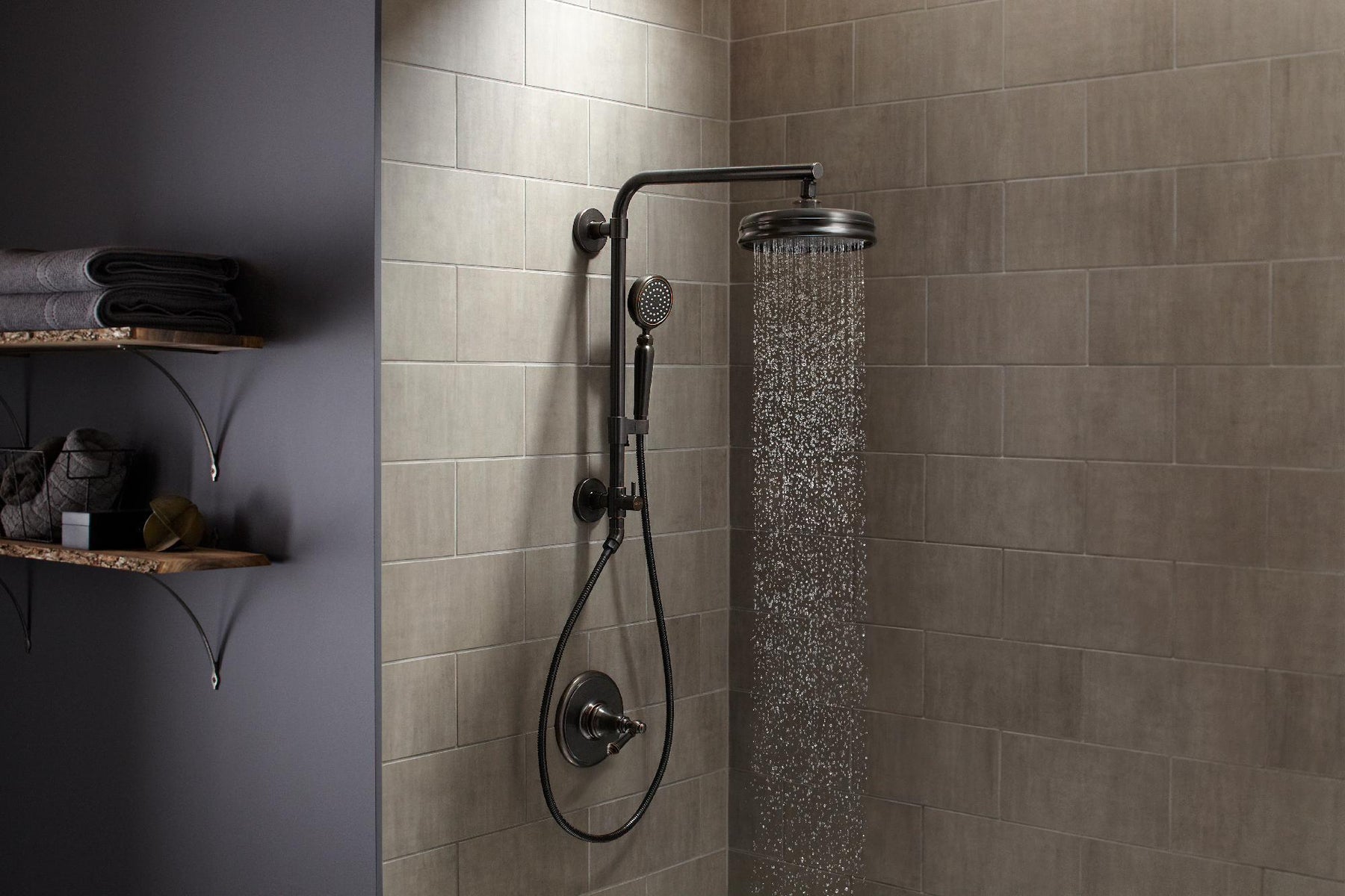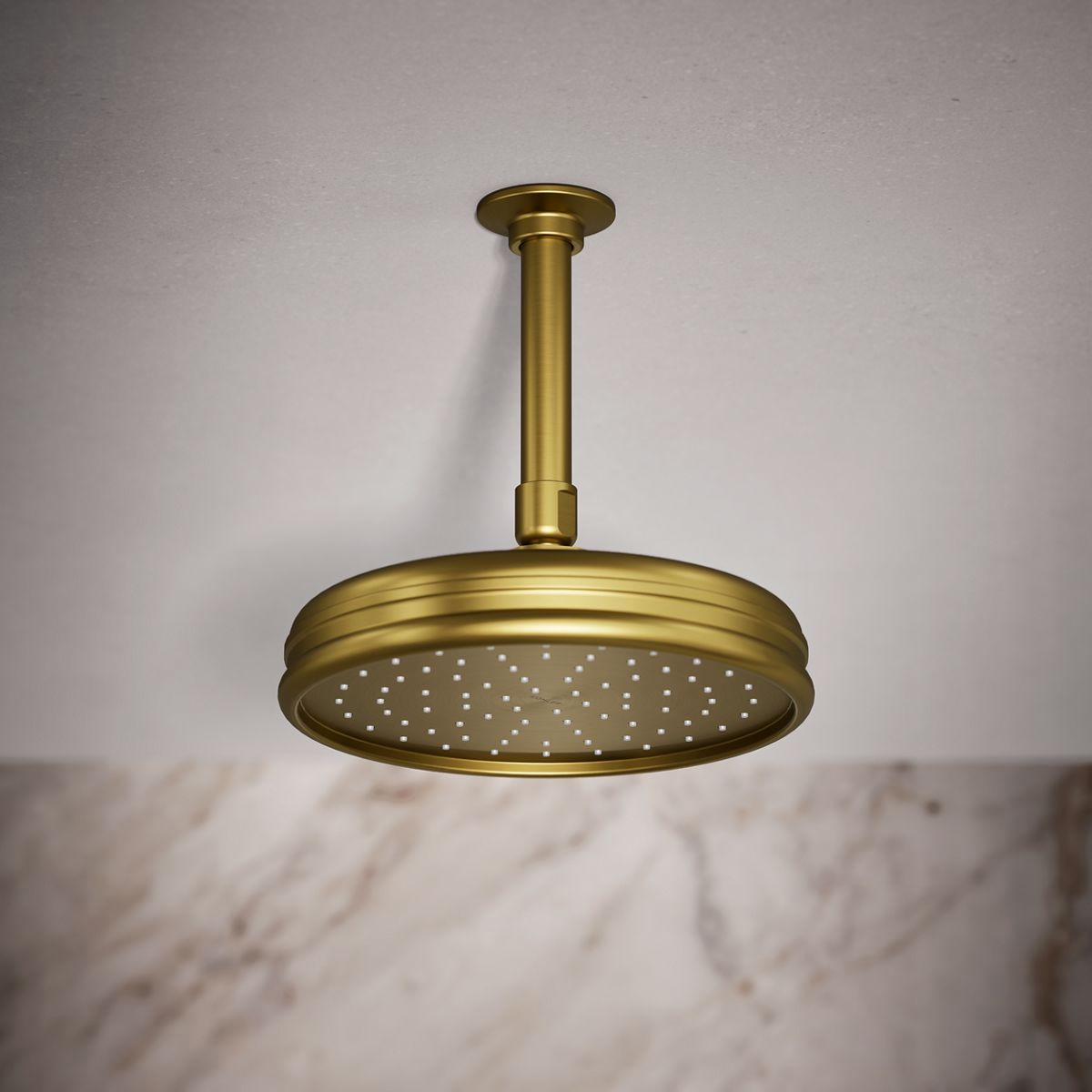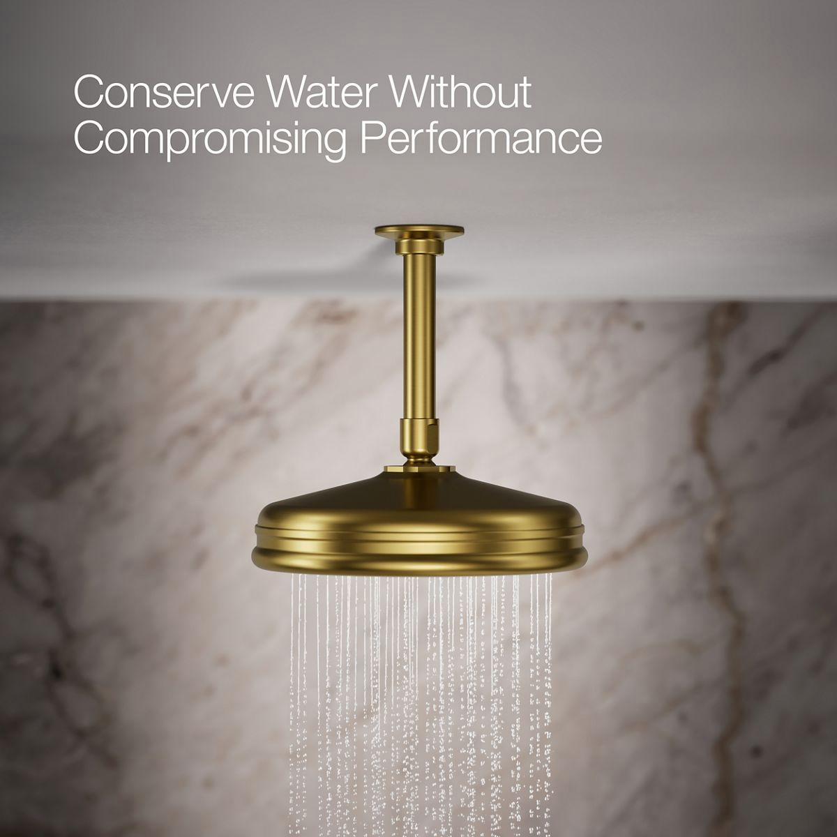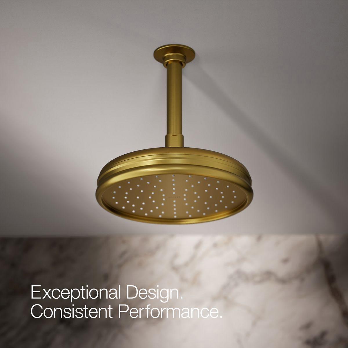 Enjoy a shower that simulates the soaking deluge of a warm summer downpour. This traditional-style rainhead features innovative Katalyst air-induction technology, which efficiently mixes air and water to produce large water droplets and deliver a powerful, thoroughly drenching overhead shower experience. Its clean good looks and durable finish coordinate with many other KOHLER faucets and accessories.