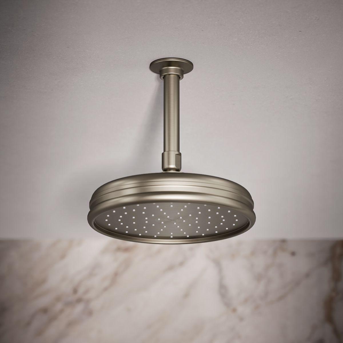 Enjoy a shower that simulates the soaking deluge of a warm summer downpour. This traditional-style rainhead features innovative Katalyst air-induction technology, which efficiently mixes air and water to produce large water droplets and deliver a powerful, thoroughly drenching overhead shower experience. Its clean good looks and durable finish coordinate with many other KOHLER faucets and accessories.