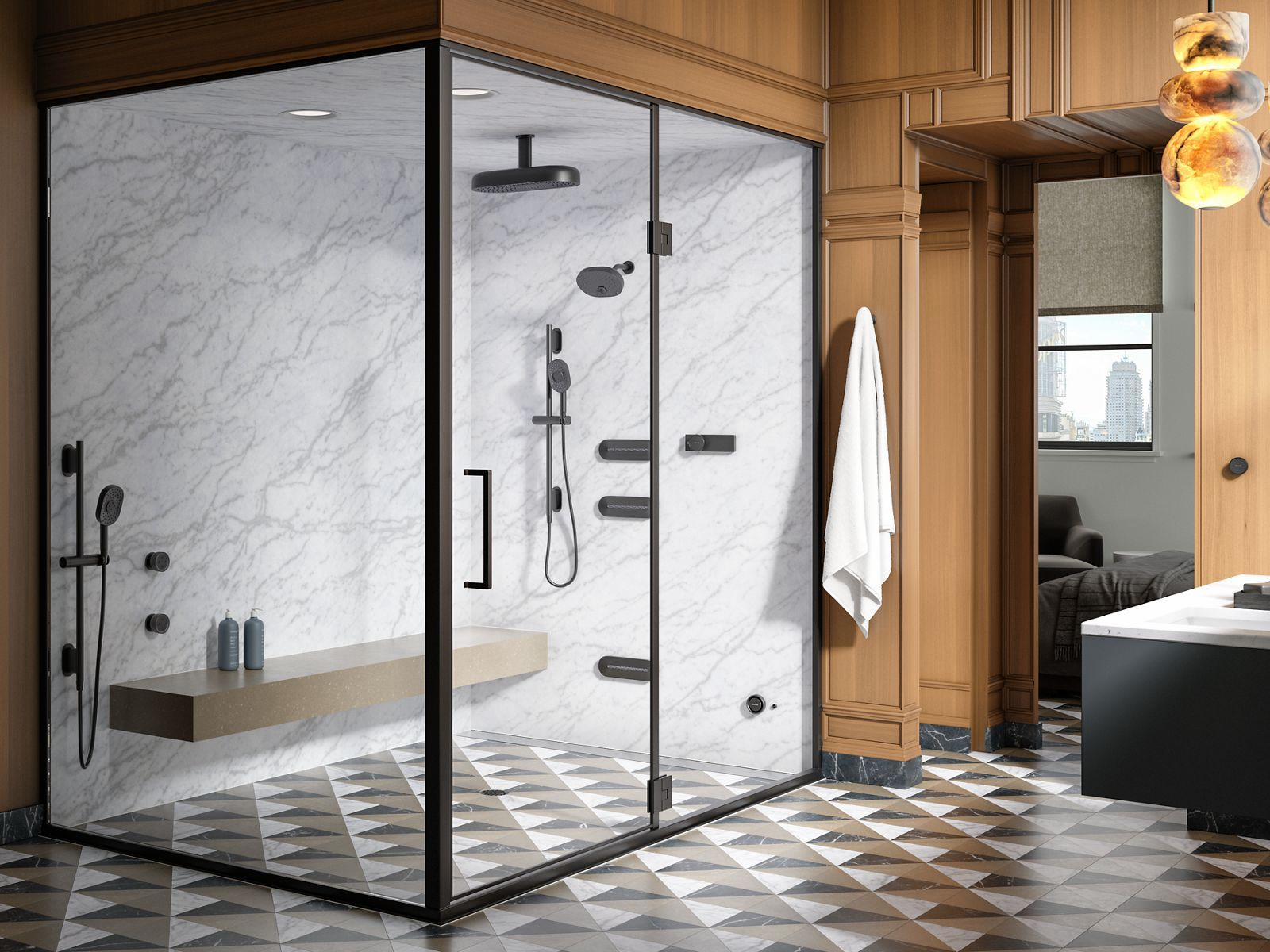 - Control steam along with temperature and flow for up to 12 shower outlets from a simple, intuitive interface