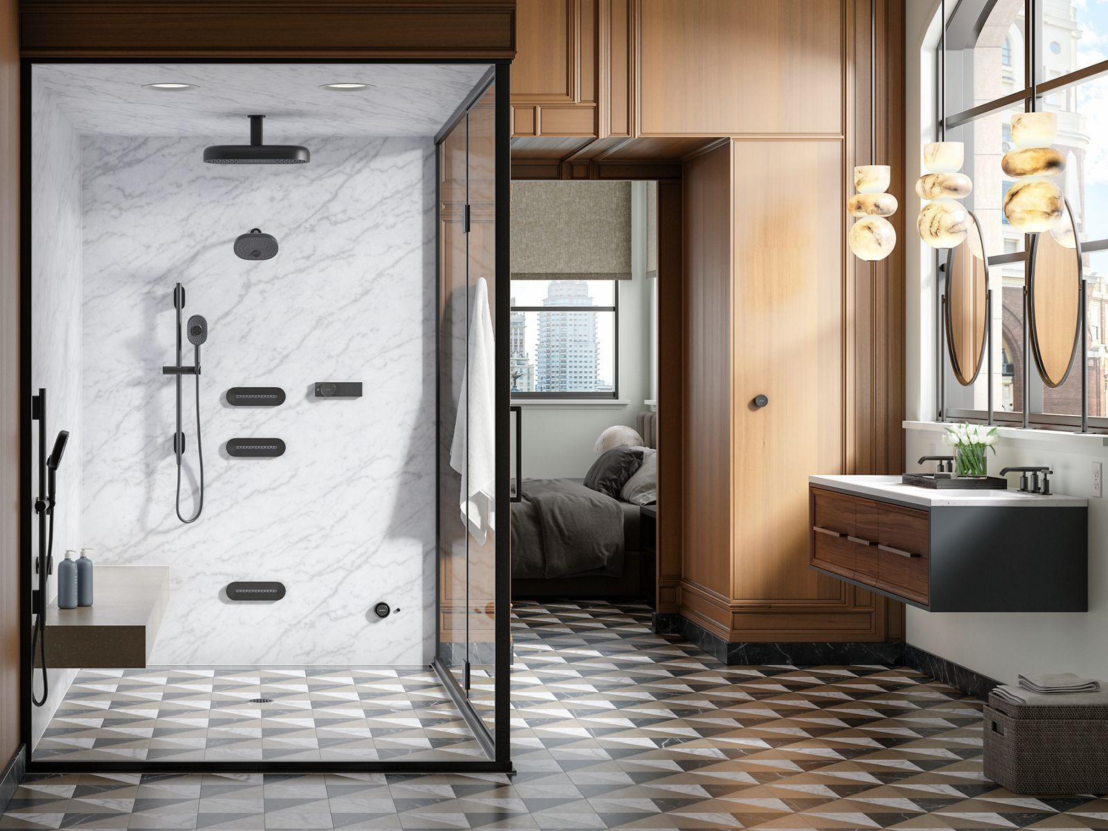 The innovative Anthem+ digital control puts the control of your custom shower at your fingertips. A sleek, minimalist display lets you configure and control temperature and flow on up to 12 water and steam outlets, creating a personalized showering experience every time. Optional built-in eco mode lets you conserve water by using just one outlet at a time, and the summary screen helps to promote mindful water usage. Pair with KOHLER Konnect app for additional features, customization, and remote functionality.