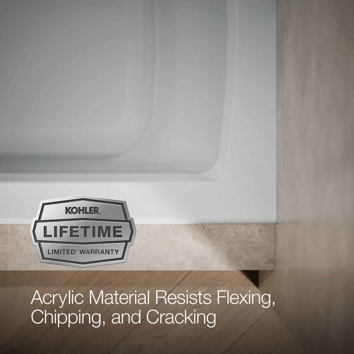 • Integral flange helps prevent water from seeping behind wall and simplifies alcove installation.