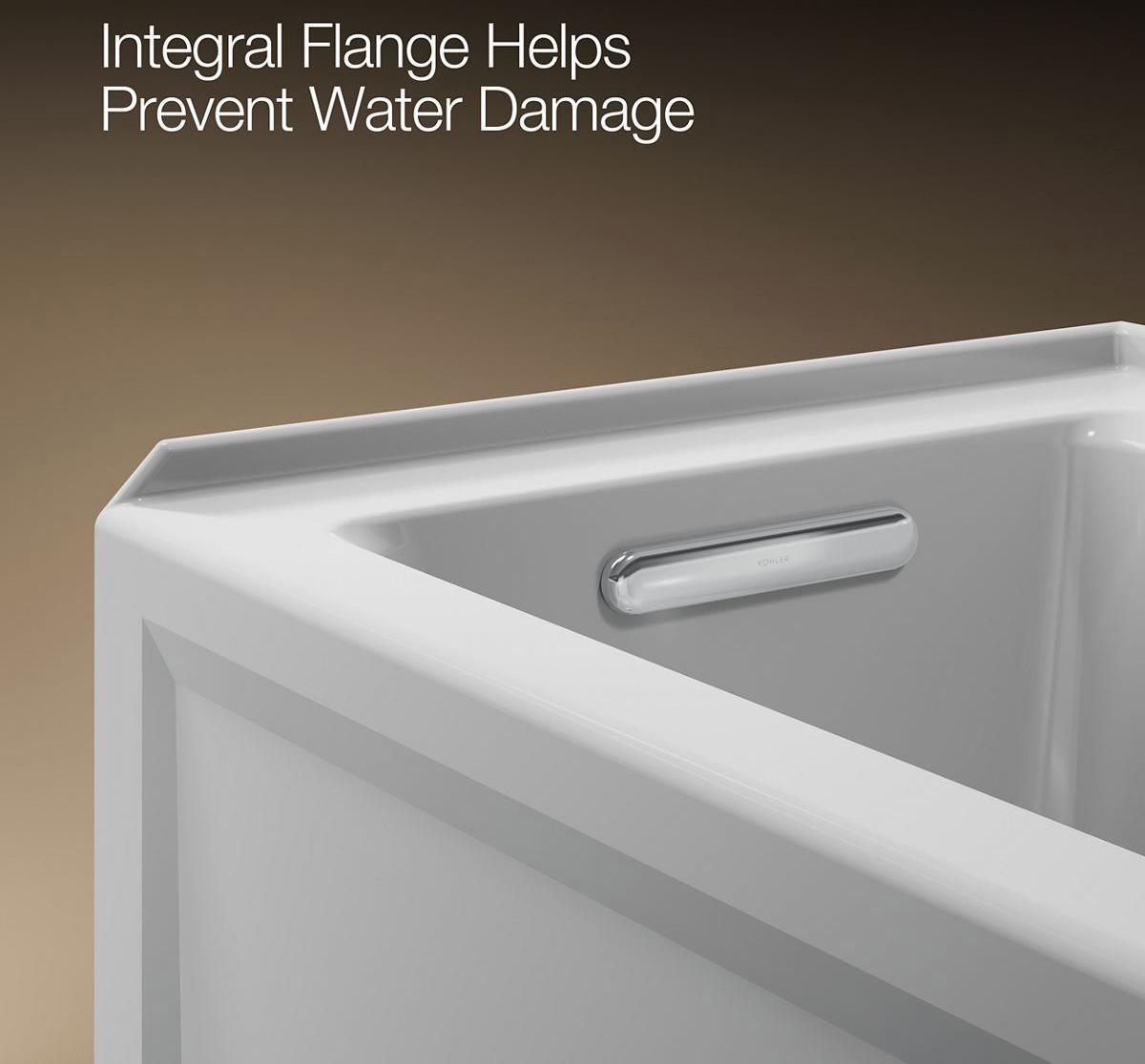 - Integral flange helps prevent water from seeping behind wall and simplifies alcove installation.